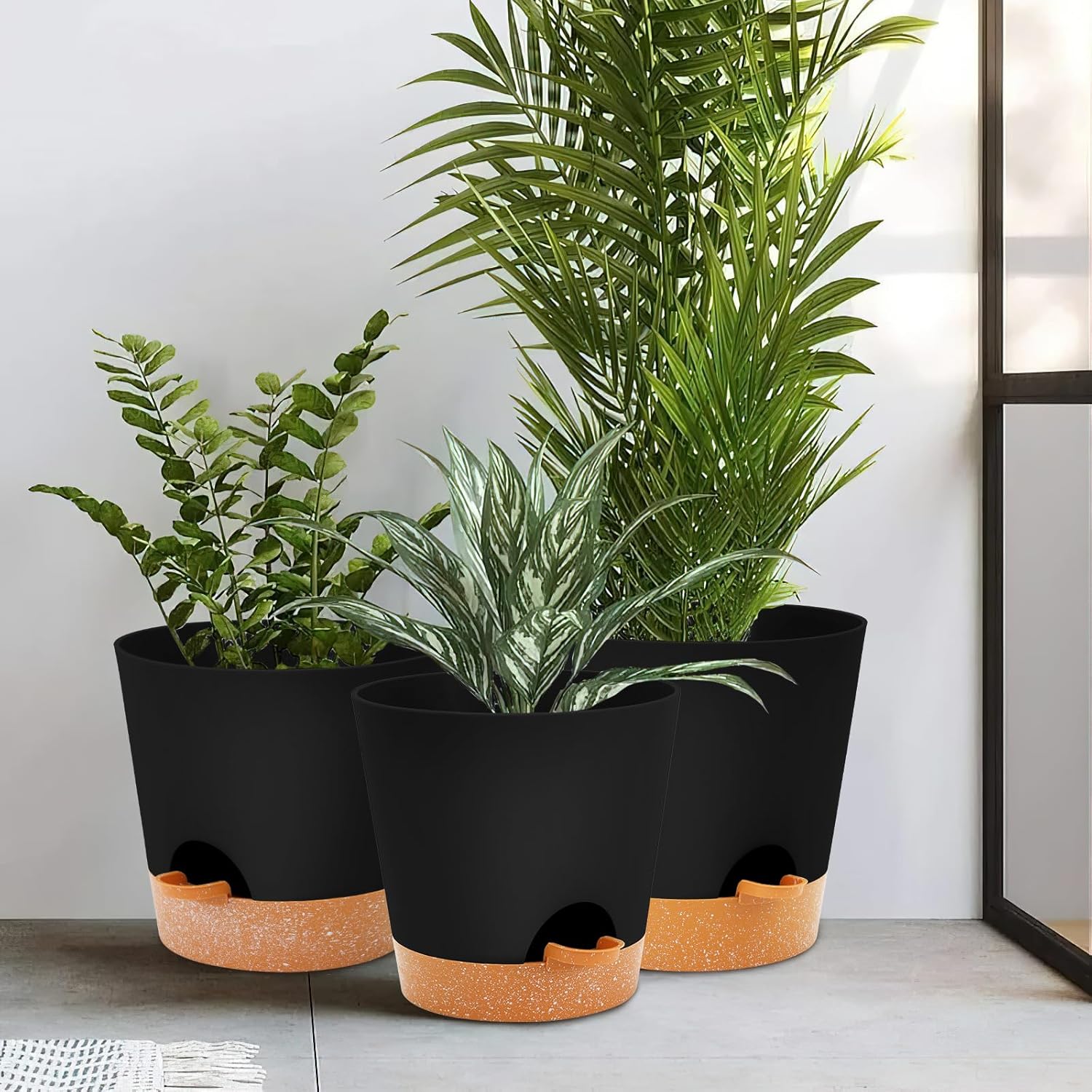 GARDIFE 10/9/8 inch Plant pots, planters for Indoor Plants, self Watering Plant Pot, Flower pots, Black