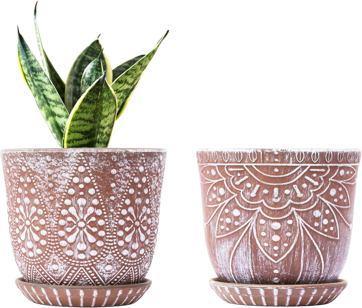 - 【Size & Package】:Pot Top Dia: 6 inch (can match a 5 inch inner pot), Pot H:5.15 inch; Saucer H:0.86 inch. Package: contains 2 ceramic flower pots, 2 ceramic saucers and 2 mesh pads(NOT INCLUDE PLANT)
