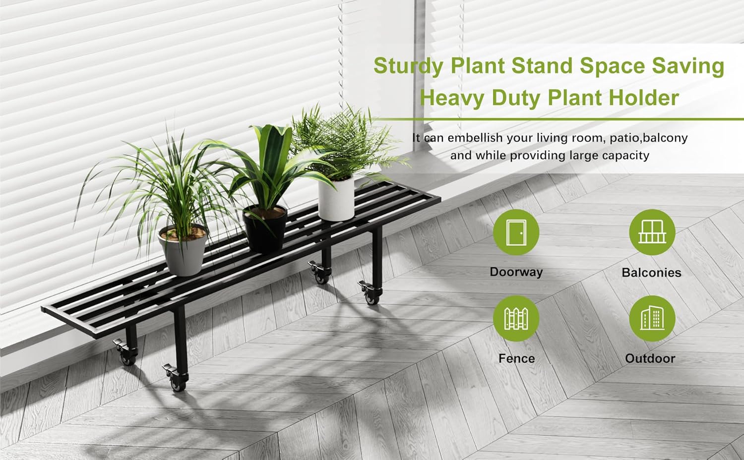 Zhongma One Tier Metal Plant Stand with Wheels,(45.67 L x 8.66 W x 10.3 H) Heavy Duty Plant Holder for Home, Window,Garden, Plant Lovers, Display Stand