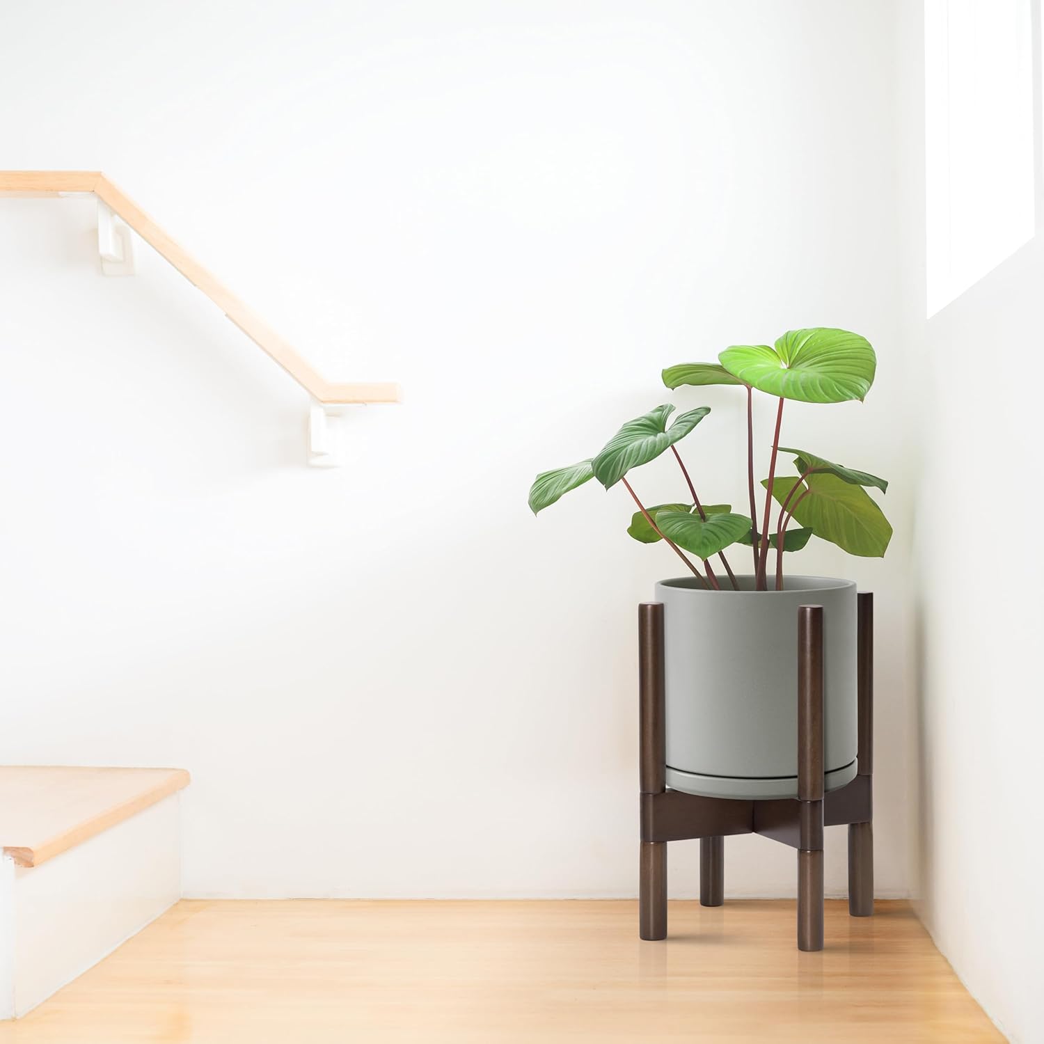- A Complete Set: Mid-century ceramic planter, combined with a sculptural, solid wood stand that match perfectly together and looks great in anywhere.