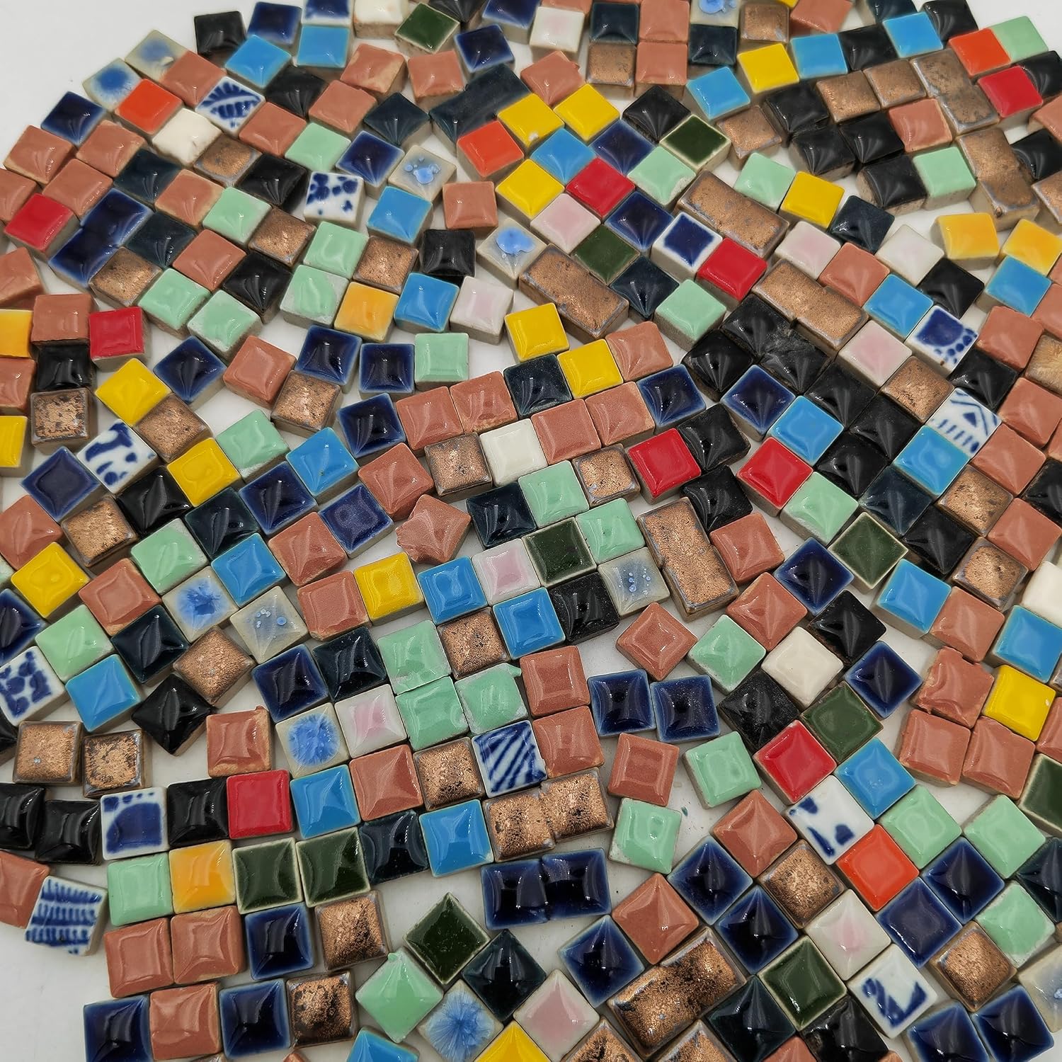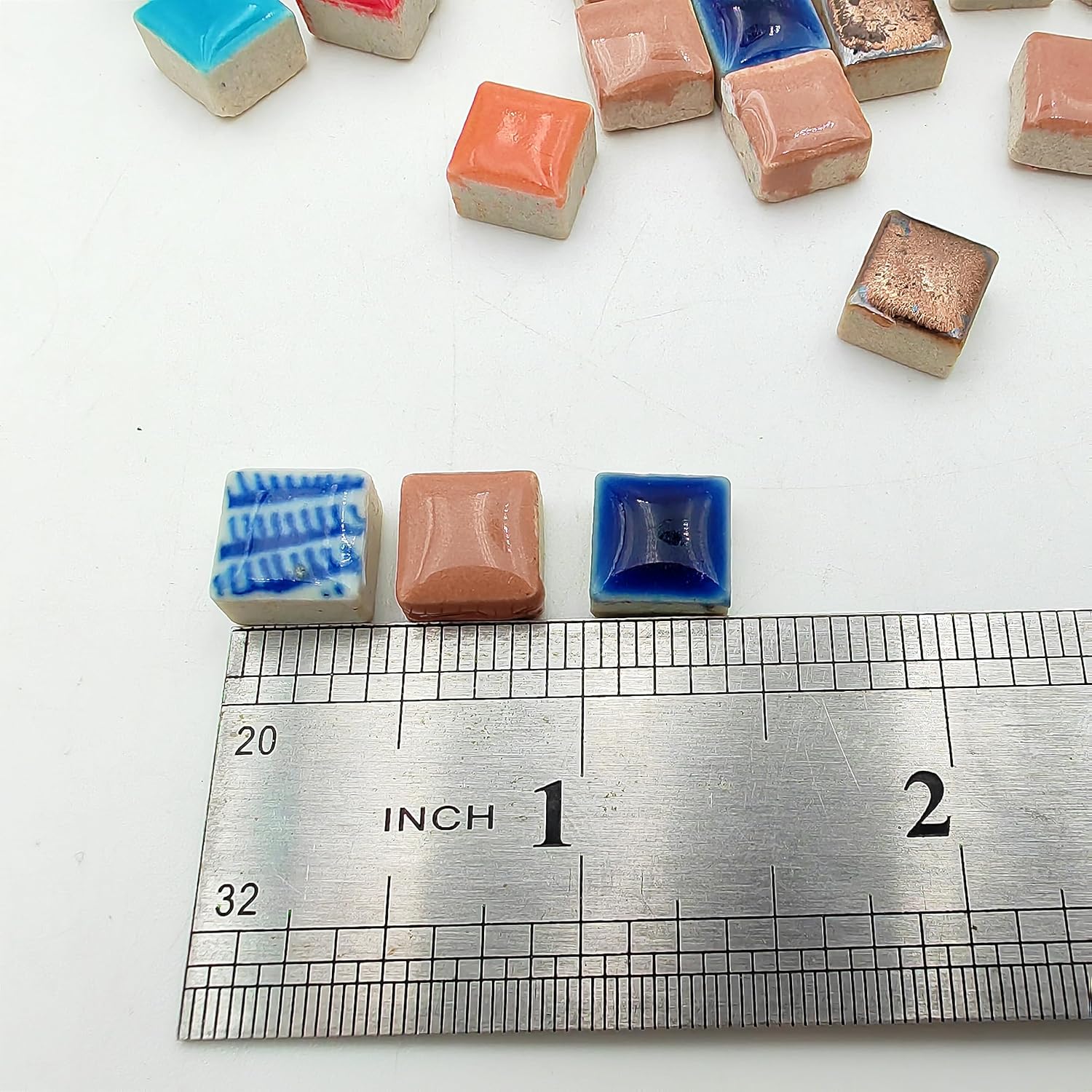 - The Ceramic Mosaic Tiles Size: 1x 1 cm/0.39*0.39 inch;Thickness 3 Size: 1/5 Inch & 1/7 Inch & 1/9 Inch;The mosaic tiles are packed in a PP bag about 400pcs
