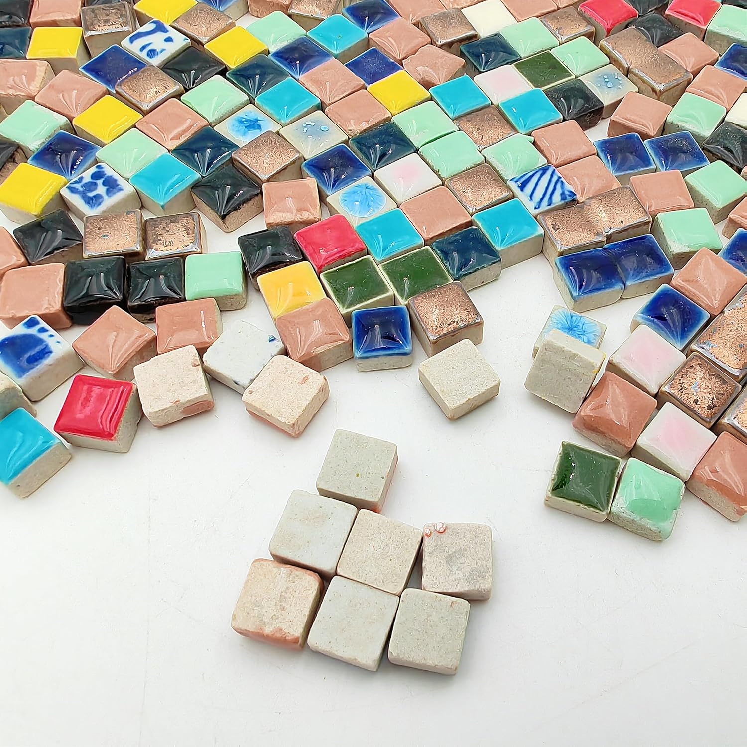 500g/1.1lb Random Color Irregular Ceramics Mosaic Tiles,DIY Making Creative Ceramic Mosaic Tiles for DIY Craft Plates Flowerpots Vases Cups Mosaic Making Supplies (Mix Square)