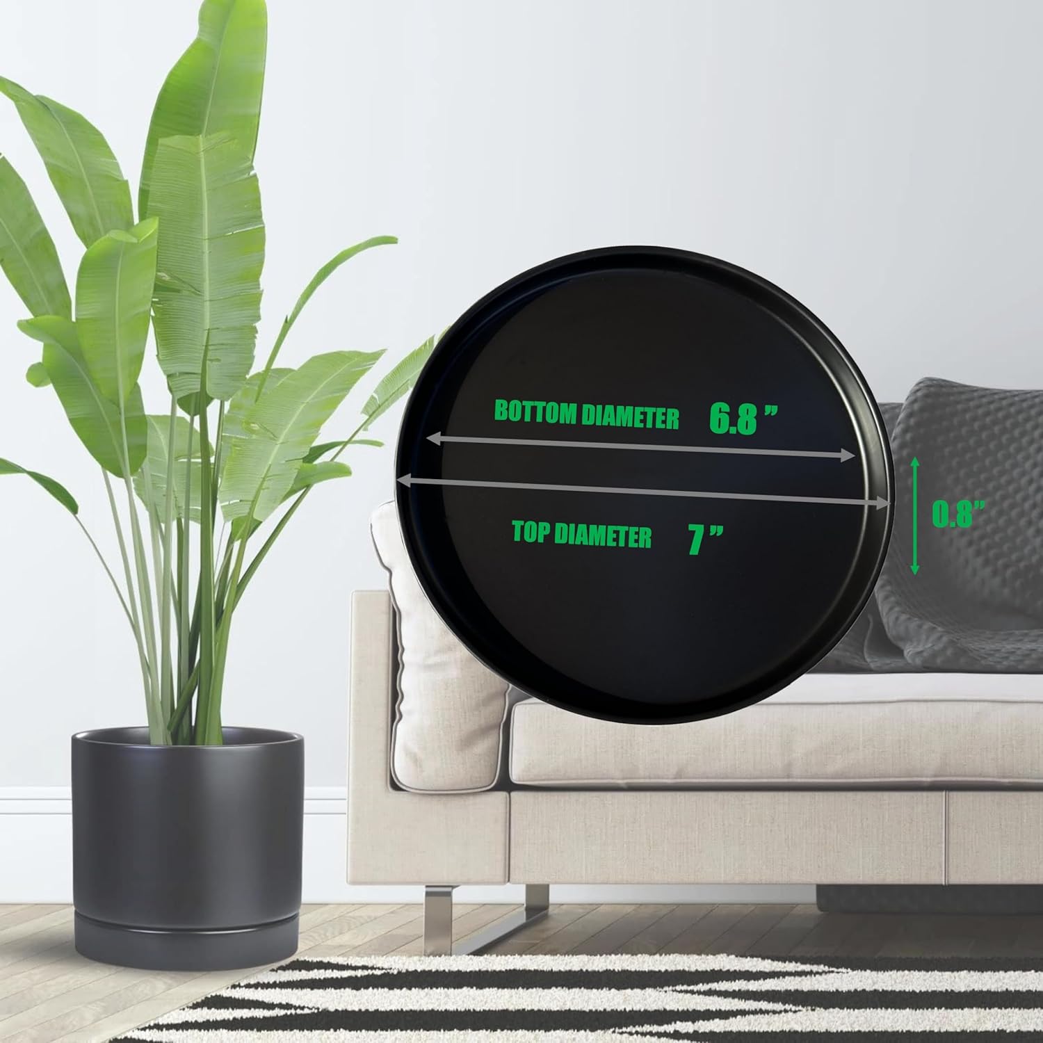 2 Pack Ceramic Plant Saucer Pot Tray 7 Inch, Planter Saucers 4 5 6 7 8 9 10 11 12 13 Inch for Indoors Outdoor, Durable Sturdy Flower Drainage drip Water Tray for Glazed Pots Base (7 Inch-Black)