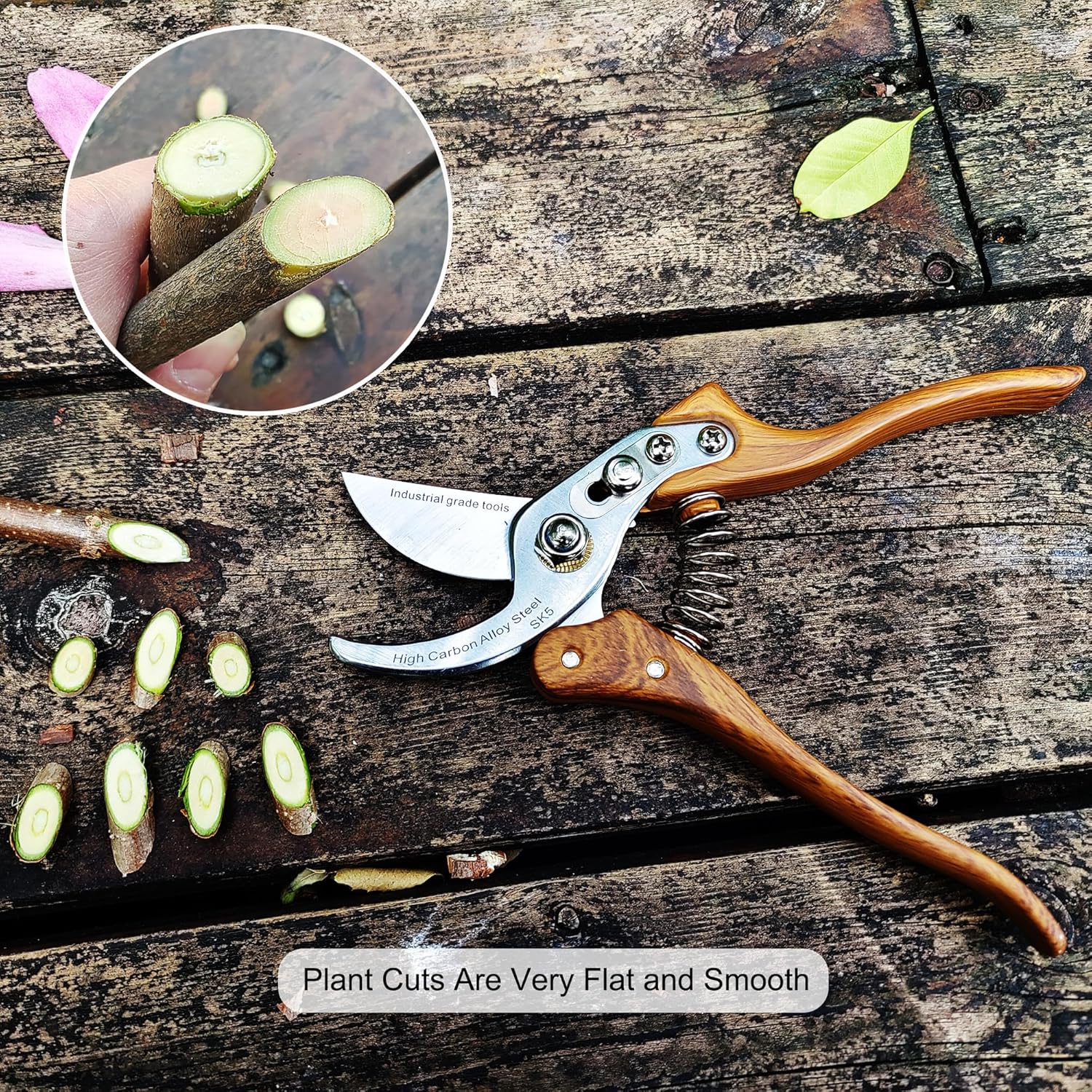 - [ POWERFUL CUTTING ABILITY ] - The garden pruning shears are made of Japanese stainless steel (SK5 steel) which can easily trim branches with a diameter of 1 inch, heavy-duty and sharp.