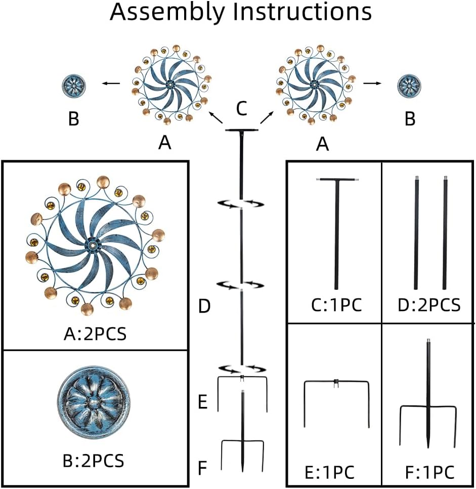 - High Quality:This kinetic wind spinner uses high-quality raw materials, rust resistant coating and four-tooth inserts, it is suitable to use in all weather conditions