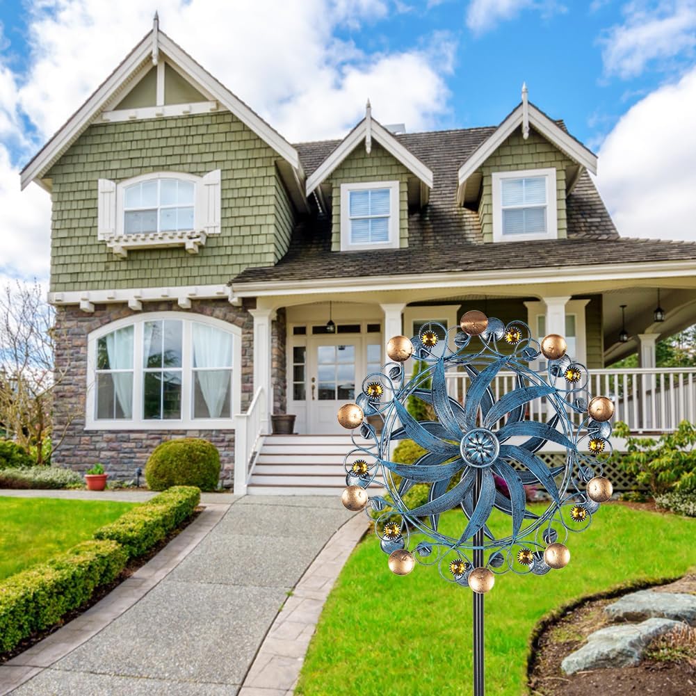 - Premium Construction:This double pinwheels has a solid metallic construction with easy spinning, blue blades can smoothly rotate on sealed bearings