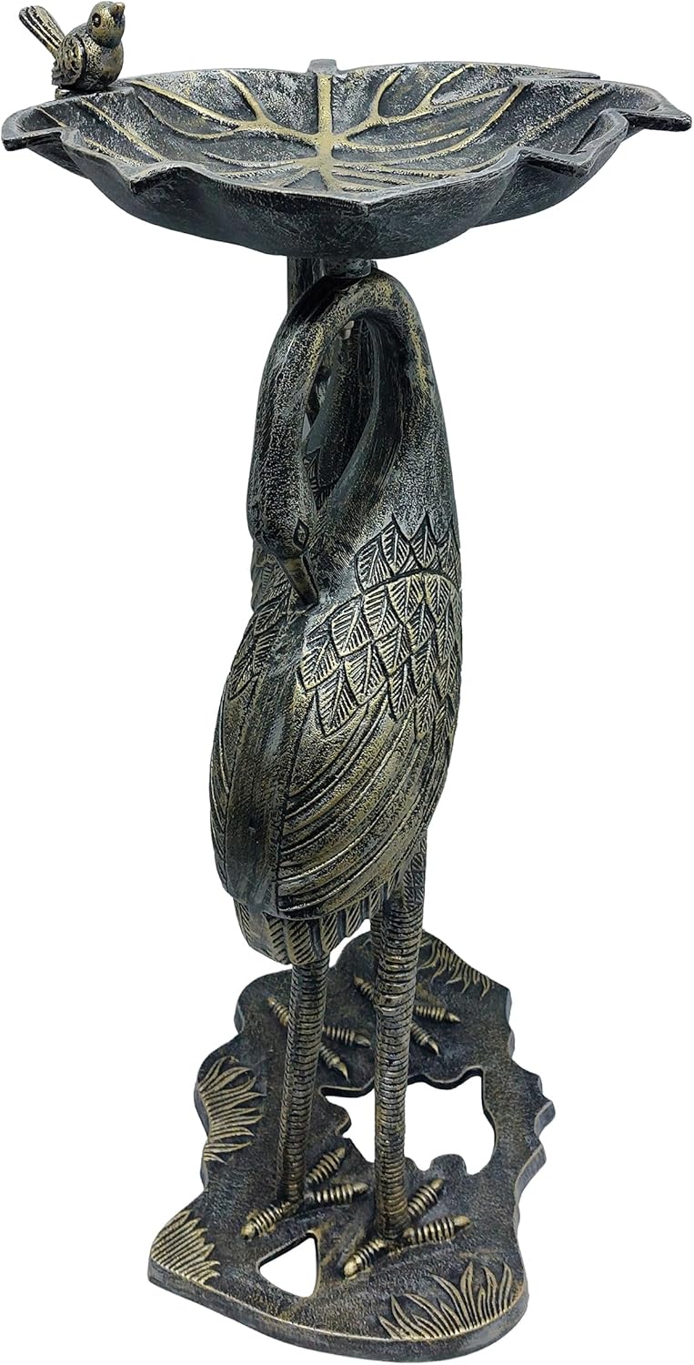 Oakland Living Cast Aluminum 30-in Twin Crane Silver Gold Bird Bath with Leaf Bowl