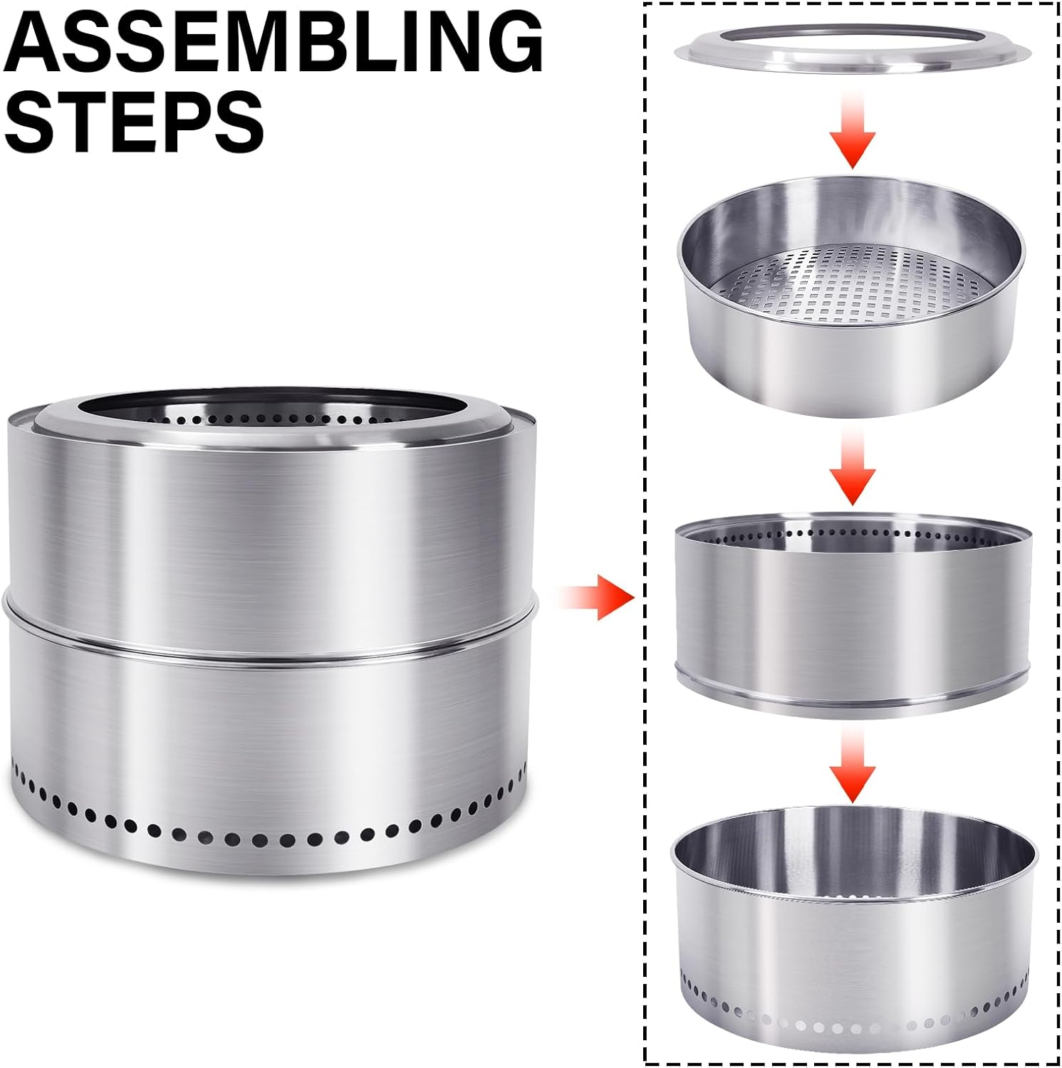- Low Smoke Firepit:The smokeless firepit outdoor of double wall design with vent holes creates a burst of hot air over fire reducing the smoke and burning more completely, without the post-fire smell in your hair and clothes