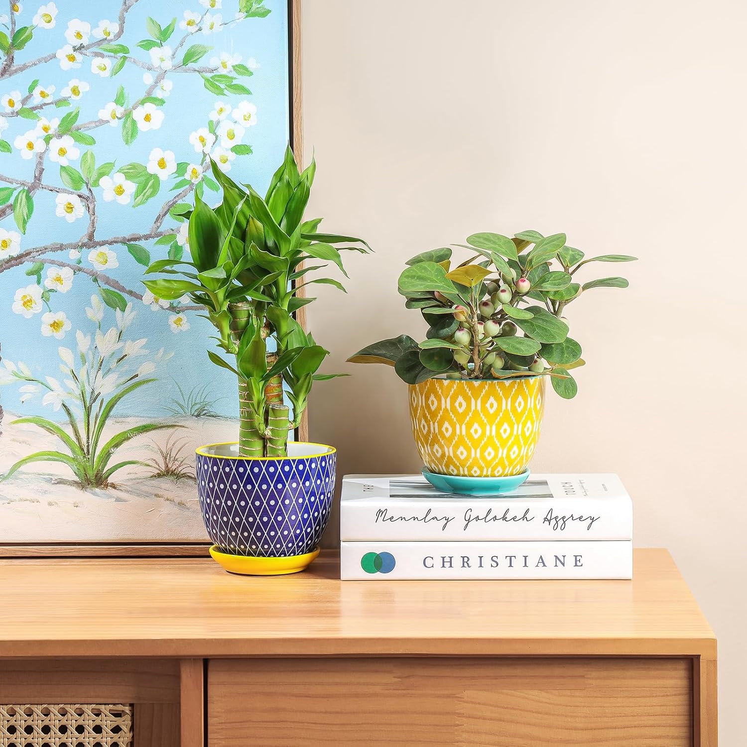 - 【STURDY QUALITY & PACKAGE】These 4.6" plant pots with the gorgeous appearance are made from sturdy ceramic, nontoxic. The complete smooth texture inner & outside makes them clean easily. Each flower pots with saucers are wrapped with thick foam to avoid damage to the flowerpot during transportation.
