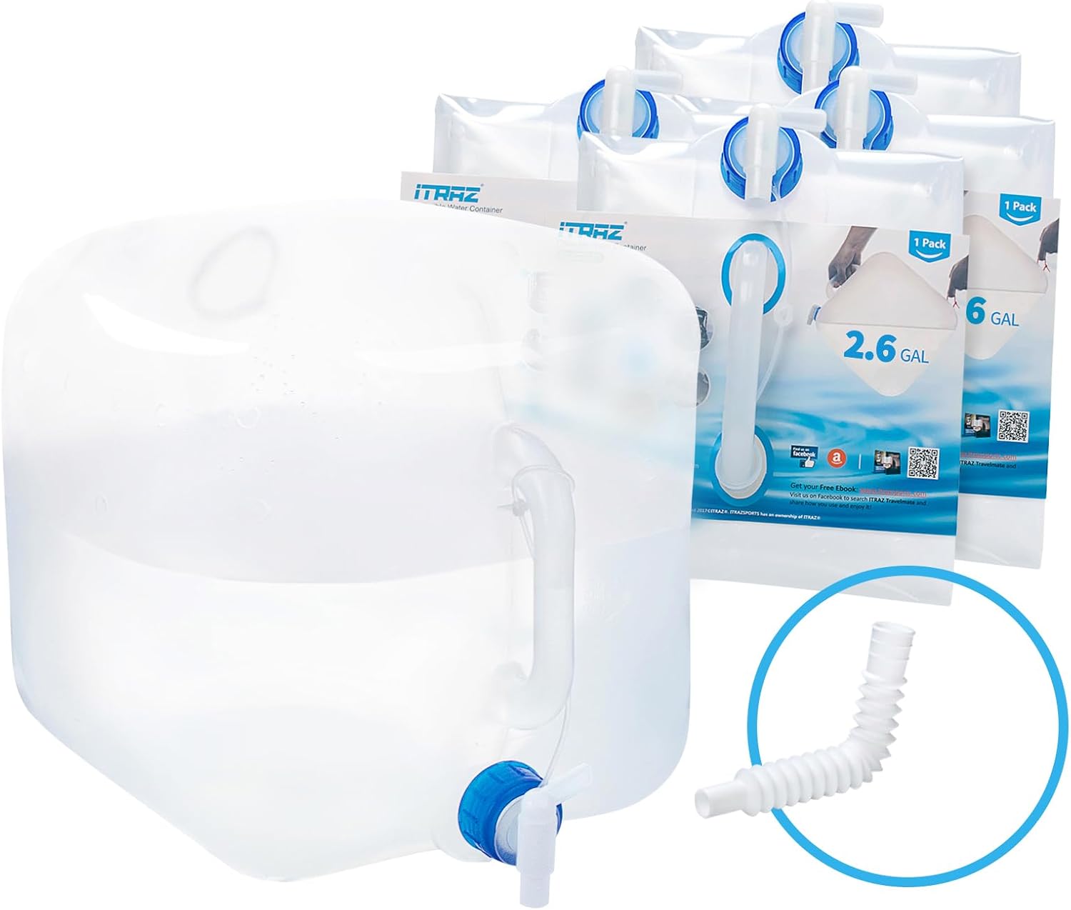 Collapsible Water Container Jug, 4×2.6 Gallon No BPA Water Storage Carrier with Spigot, for Camping Hiking Backpack RV Outdoors and Emergency, Foldable Portable Survival Kits for Hurricanes