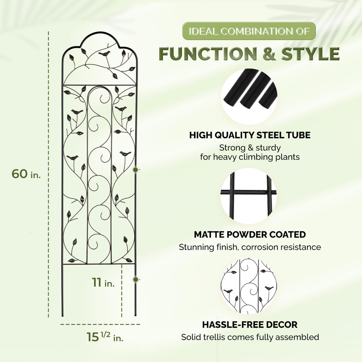 Idzo Decorative Metal Trellis for Climbing Plants Outdoor, Anti-Corrosion Powder Coated Garden Trellis, Sturdy Long Spikes, 60 Inch