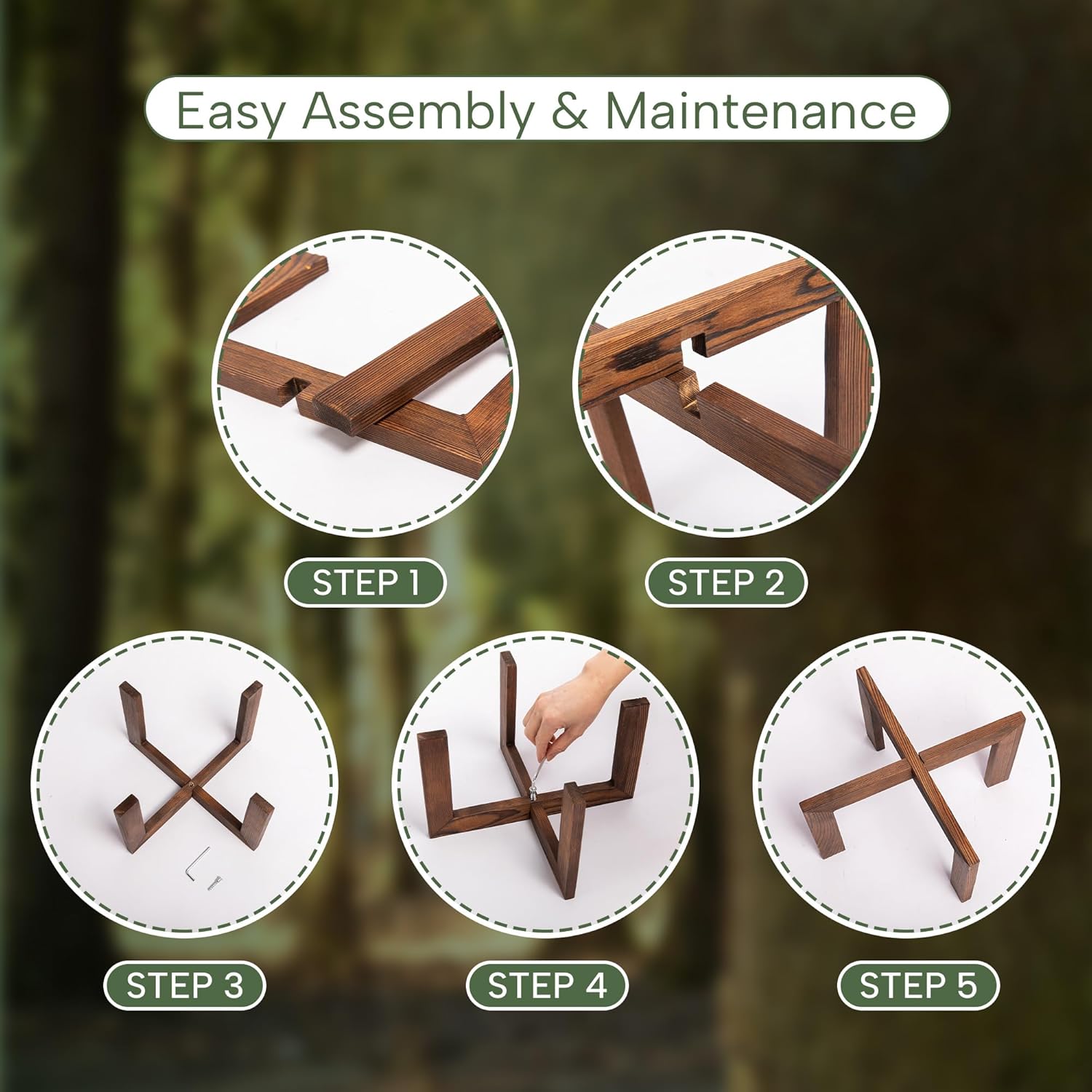 - 【Easy Assembly & Maintenance】:Wooden corner plant stand comes flat in two pieces and just needs to put the two legs together. Simply stand it up and insert the crossbar in the cut. They're also very low-maintenance — a quick wipe down is all it takes to keep them looking pristine, ensuring your focus remains on enjoying your stable plants holder, not on cumbersome care routines.