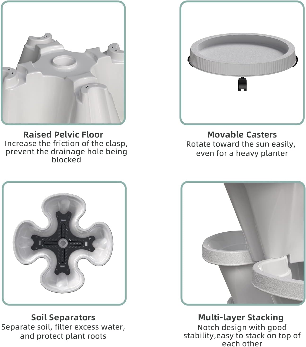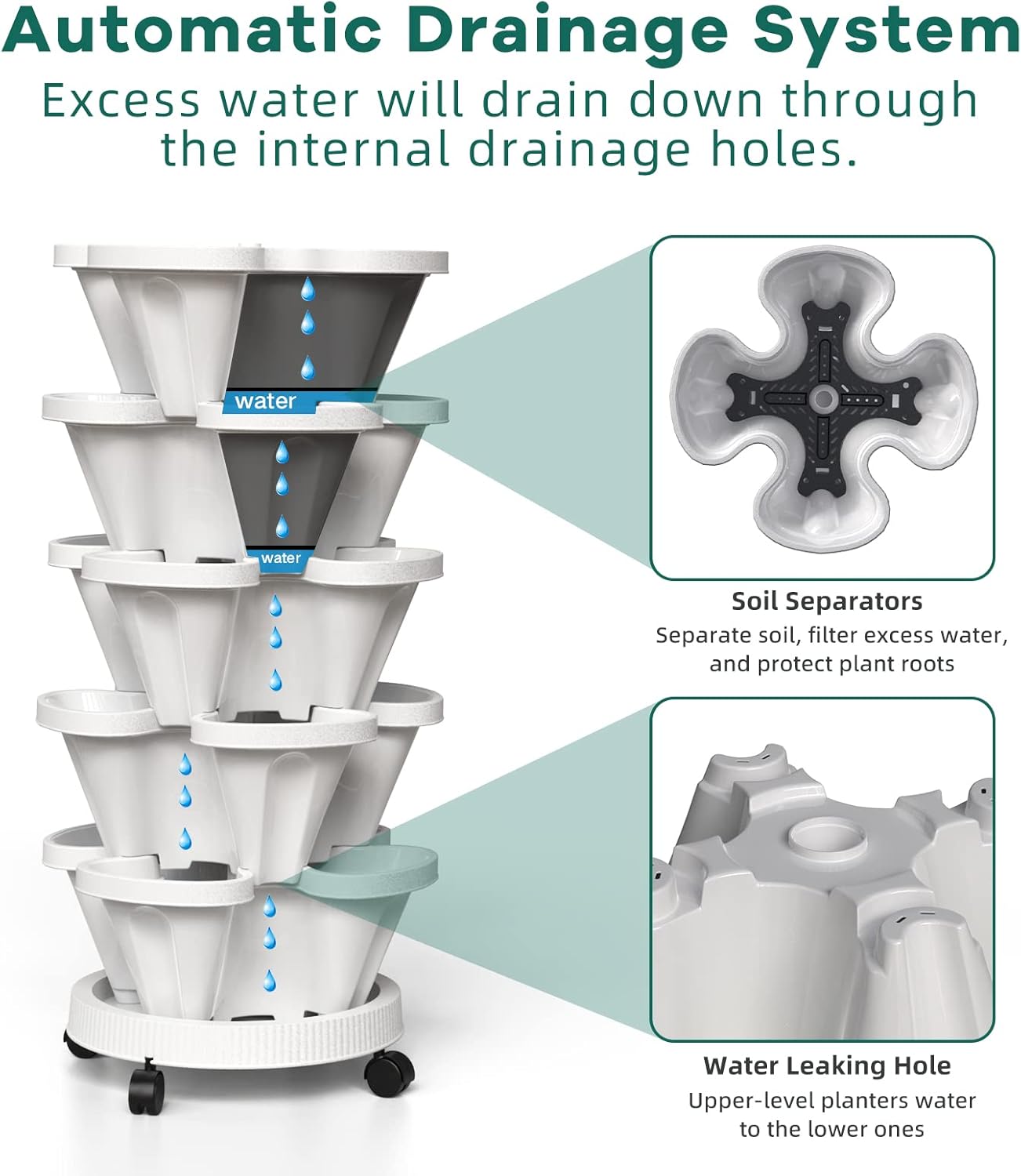 - 5 Tier Vertical Planter - 5 tier stacking planter, made of BPA-free material, can hold up to 20 different plants, such as strawberries, spinach, leaf lettuce, arugula, and mustard greens, and a few smaller herbs and flowers. Plus, it's the perfect vessel for strawberries as the berries cascade over the container lip.