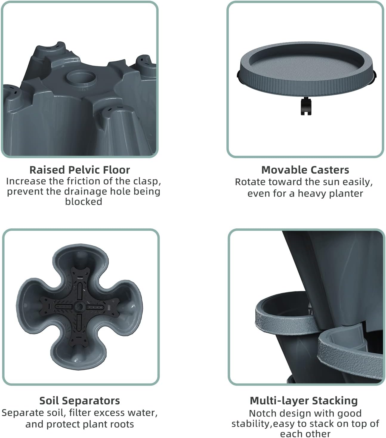 - 6 Tier Vertical Planter - 6 tier stacking planter, made of BPA-free material, can hold up to 24 different plants, such as strawberries, spinach, leaf lettuce, arugula, and mustard greens, and a few smaller herbs and flowers. Plus, it's the perfect vessel for strawberries as the berries cascade over the container lip.