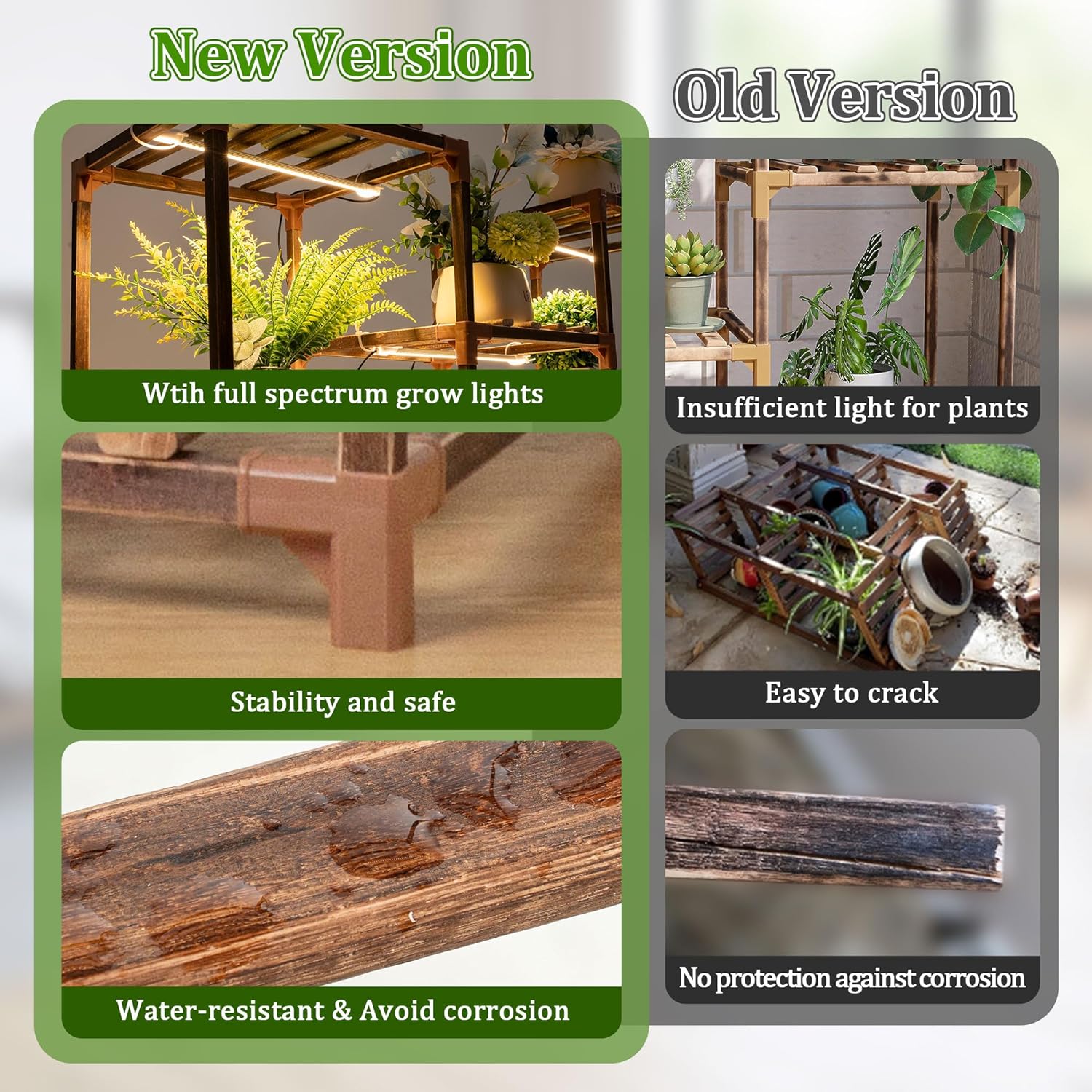 - 【11-Tier, 46" Elevated Plant Stand】 This 46" plant stand indoor features 11 pot stands. Our planter stands for indoor plants space-saving design with small footprint, making full use of vertical space in unused corner areas . Plant Stand with Grow Lights the staggered design offers enough space for different kinds the even gap makes them get enough air and sunlight.