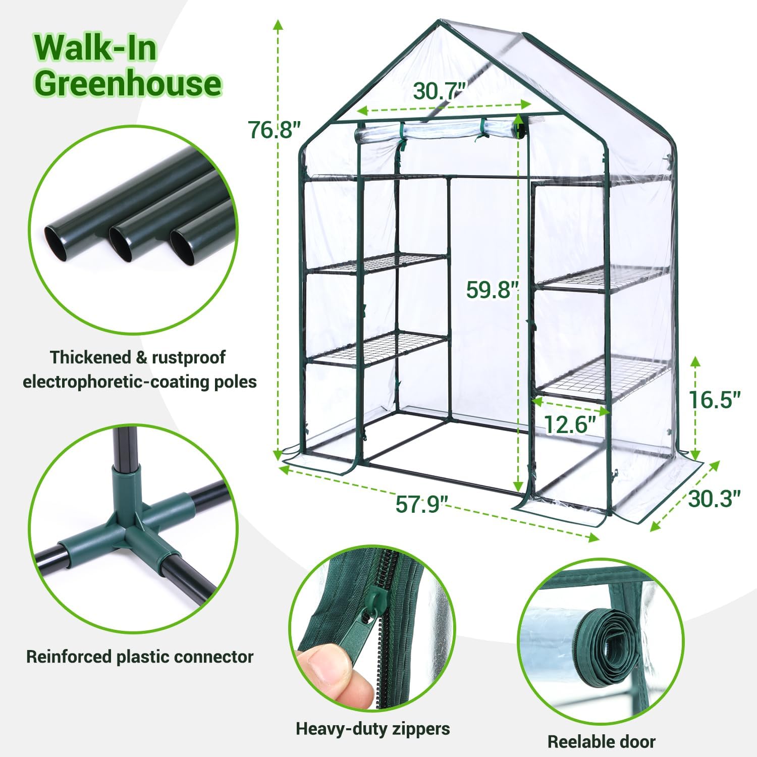 - Multi-Purpose Use: This green house is perfect for extending the growing season of various herbs, vegetables, and fruits. It can also be used to showcase beautiful perennial plants or store gardening supplies during the off-season