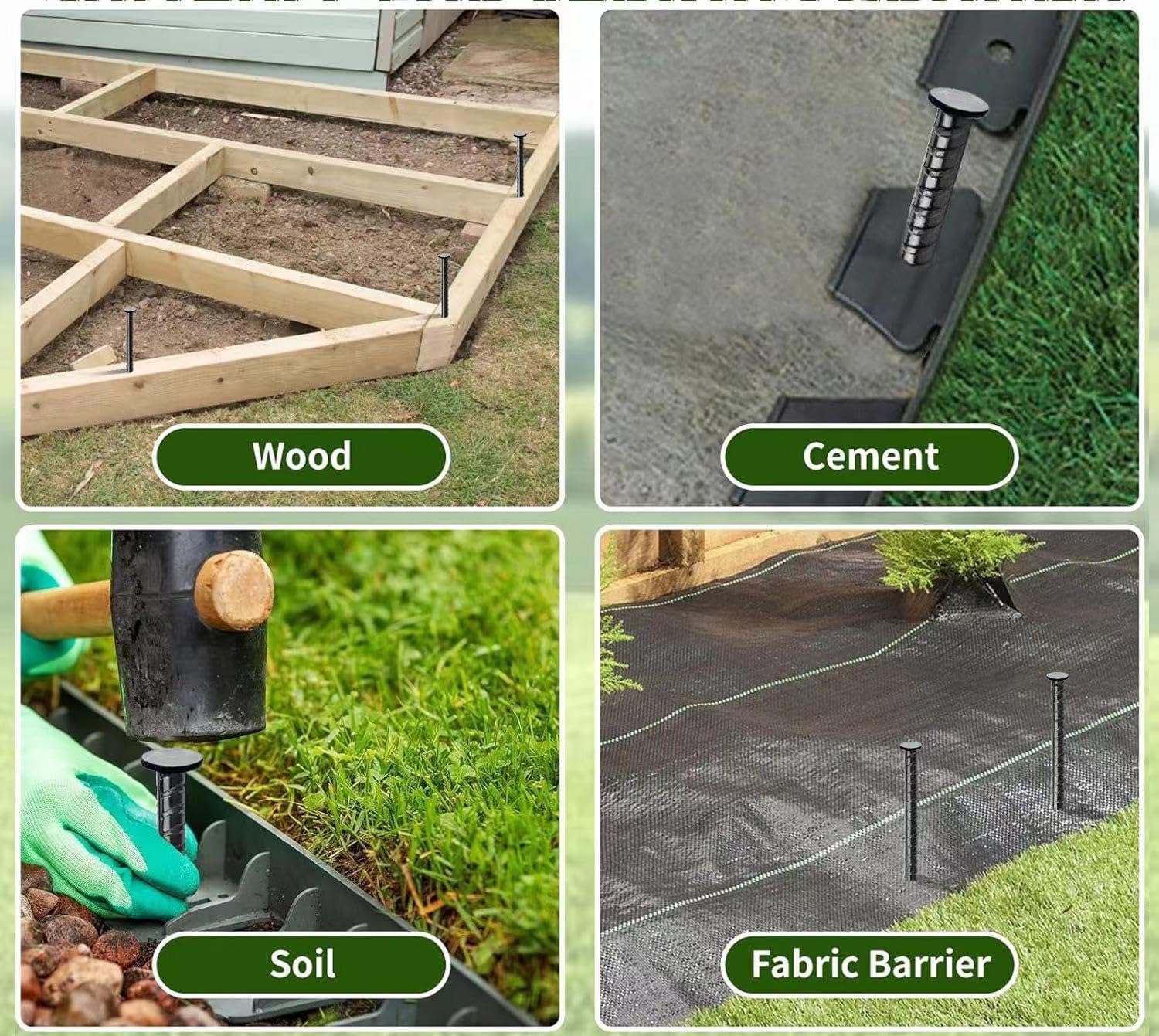 - Multi-purpose: Heavy metal, black baking paint process steel piles for anchoring trees, vines and other garden plants, landscape wood, concrete molding, measuring scale, camping tents and other pillar support. It can also be used for anchoring speed bumps, stopping roadsides, wheel stops, rope covers, obstacle threshold ramps, etc.