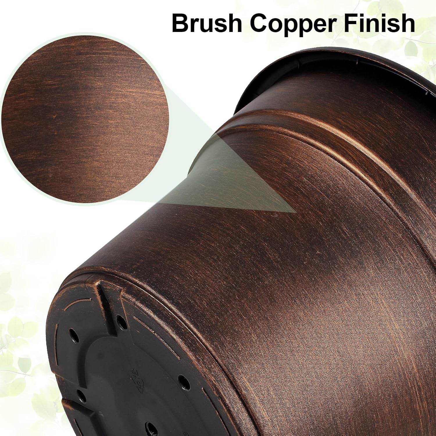 Plant Planters Pots Set of 4 Pack 11 Inch, Plastic Flower Pot for Indoor Plants with Drainage Holes & Trays, Resin Decorative Container Sets with Saucer for House Outdoor Garden Planters Copper