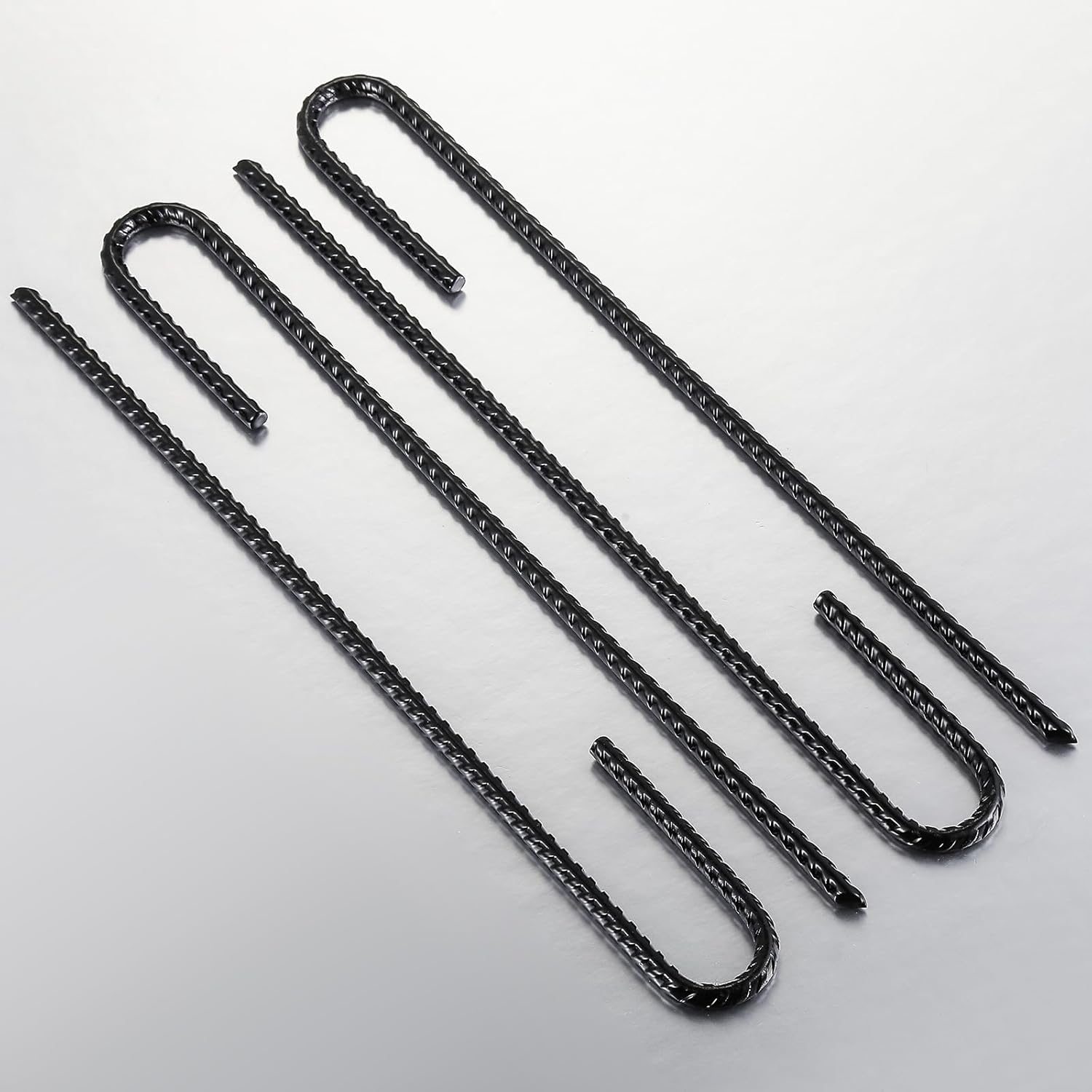 Rebar Stakes U/J Hook Extra Heavy Duty,(50pcs) 12 inch x 1/4 inch Rust Proof Coated Steel Ground Stakes Ground Anchors, Garden Stake Metal Stakes Tent Stakes Trampoline Anchors (J-Hook)
