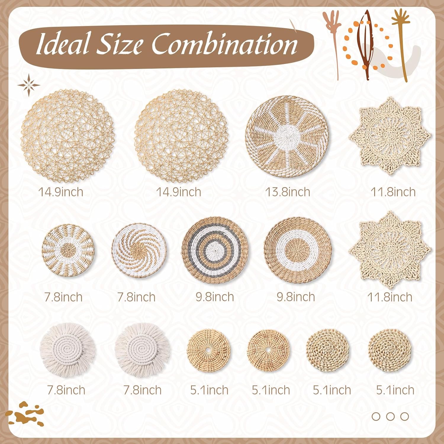 - Selection of Sizes: the hanging storage baskets meet your needs in many spaces with a versatile size offering; With diameters ranging from 5.12 inches/13 cm to a maximum size of 14.96 inches/ 38 cm, these wall basket decors provide you with the flexibility to draw attention to any wall effortlessly; Adding variation in size not only adds depth to your decor but also allows a personalized placement according to the wall's size