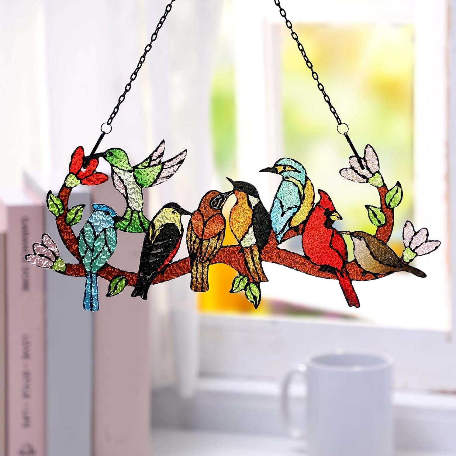 - Bird-Themed Design: Our birds-on-branch stained glass suncatcher vividly showcases 8 colorful birds perching on a sturdy budding branch, including cardinals, hummingbirds and kingfishers. Great addition to your home decoration, adding natural beauty and serenity to your house.