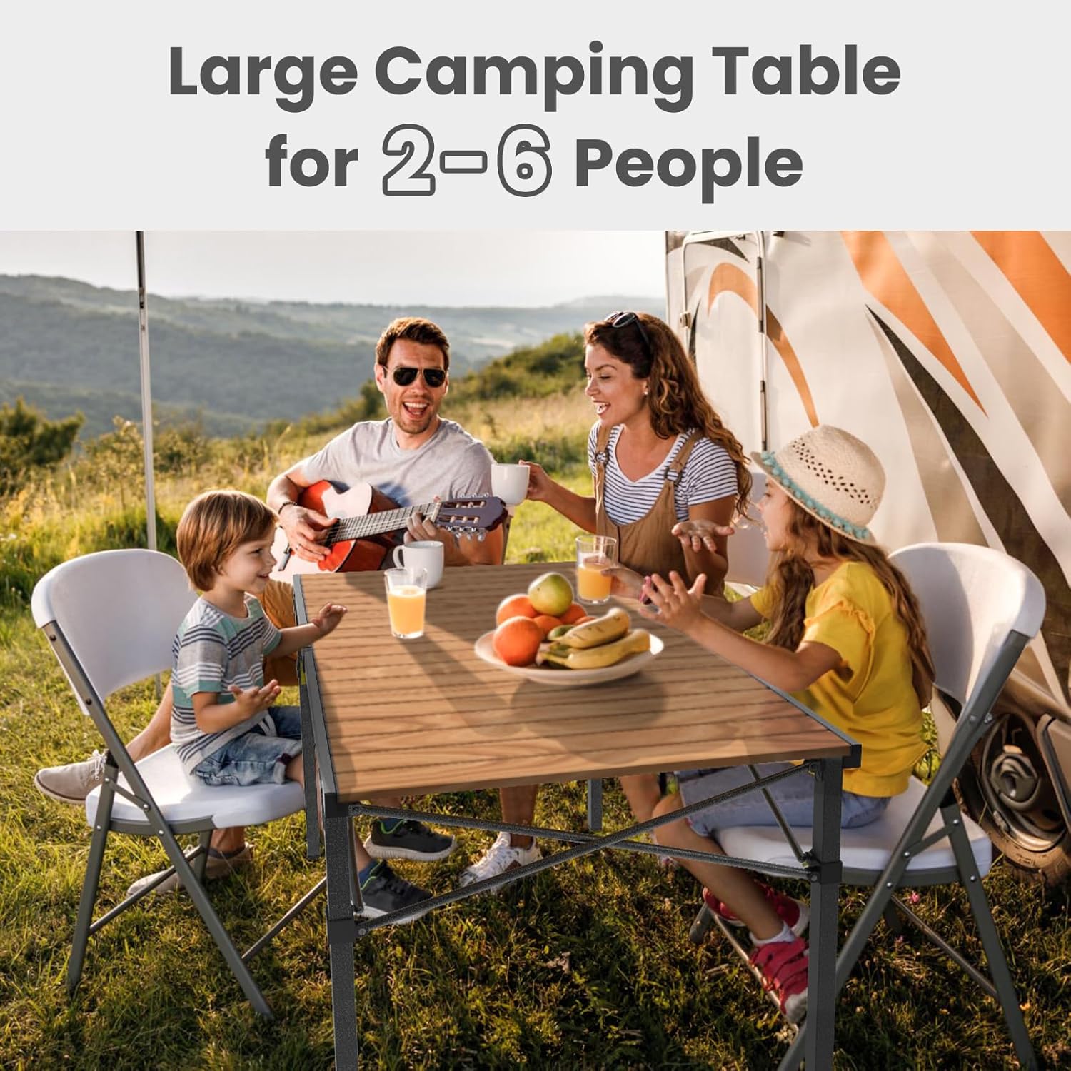 - Large Size: The foldable camping table features a spacious 46.4 Ă— 27.5-inch tabletop, providing ample room for a small party of 4-6 people or a family gathering. With a 27.6-inch height, it comfortably accommodates chairs, allowing you to stretch your legs freely without hitting any obstructive bars underneath.