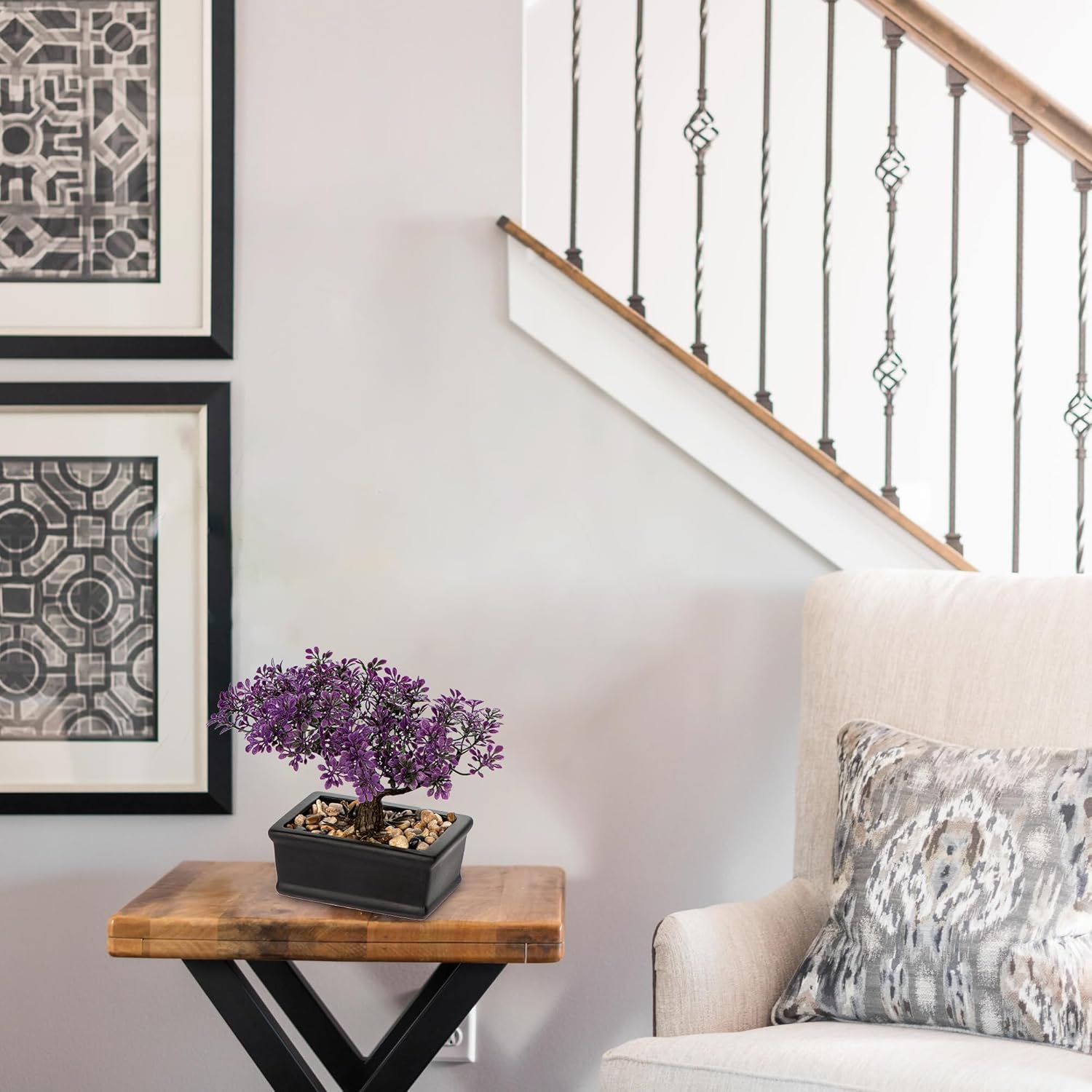 Artificial Bonsai Tree Juniper Faux Plants Indoor Fake Plants Decor with Black Ceramic Pots for Home Table Office Desk Bathroom Shelf Bedroom Living Room Farmhouse Decorations-Purple