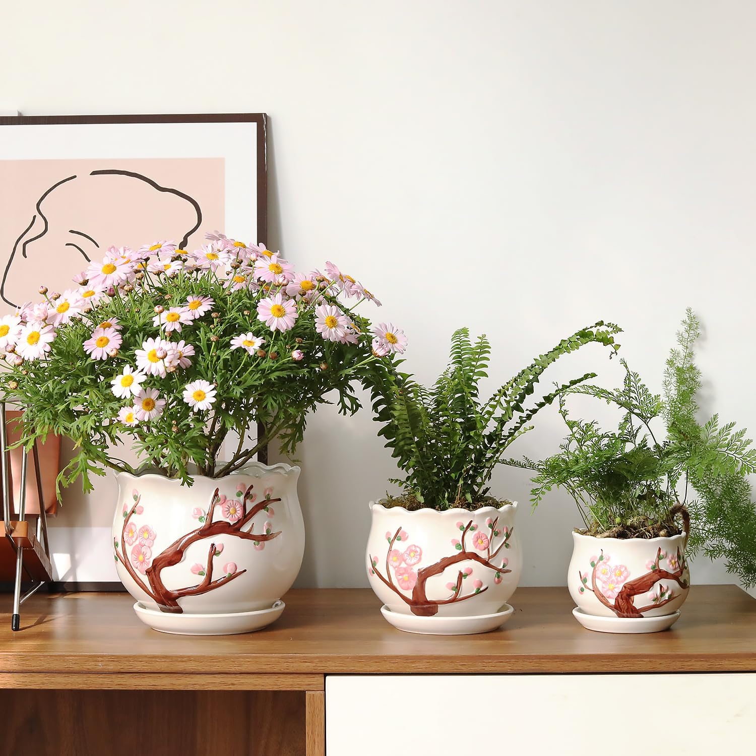 - PLANT POTS SET OF 3 : Made of high-quality ceramic materials, The surface is decorated with hand-painted flowers, suitable for pairing with various interior decoration styles, adding greenery to your home.