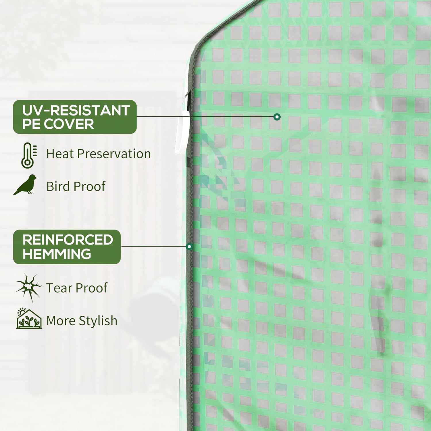 - Outdoor Ready: Built with a powder-coated steel frame reinforced with horizontal support tubes, patio greenhouse gives durability and corrosion resistance. The airtight cover provides secure protection for lasting plant care - bury the edges in soil and anchor with ropes and spikes.