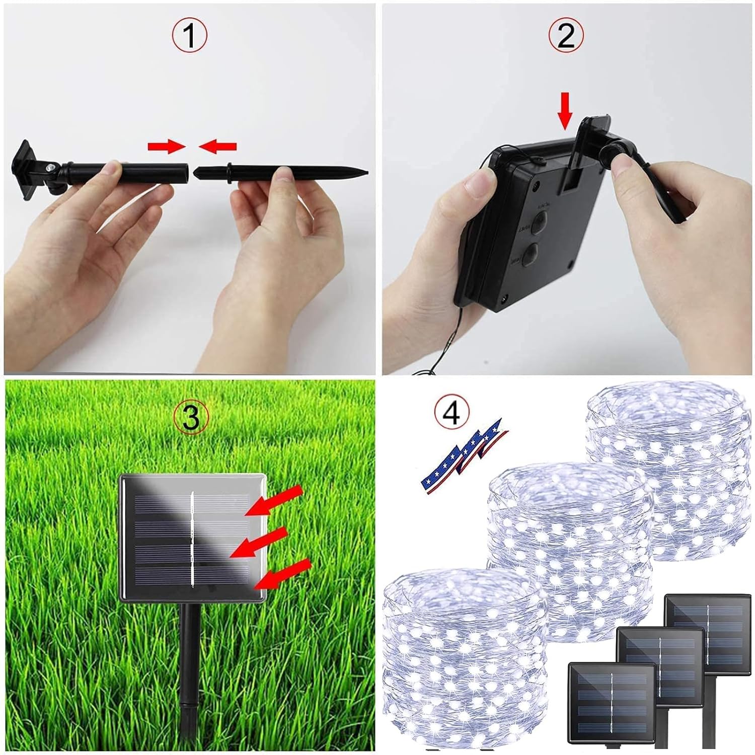 - [8 Lighting Modes & Memory Function]: These solar lights outdoor waterproof have the On/Off button and mode button. You can select 8 different modes to satisfy your diverse needs. The built-in memory chip saves your last mode setting, so there is no need to reset it each time you turn it on.