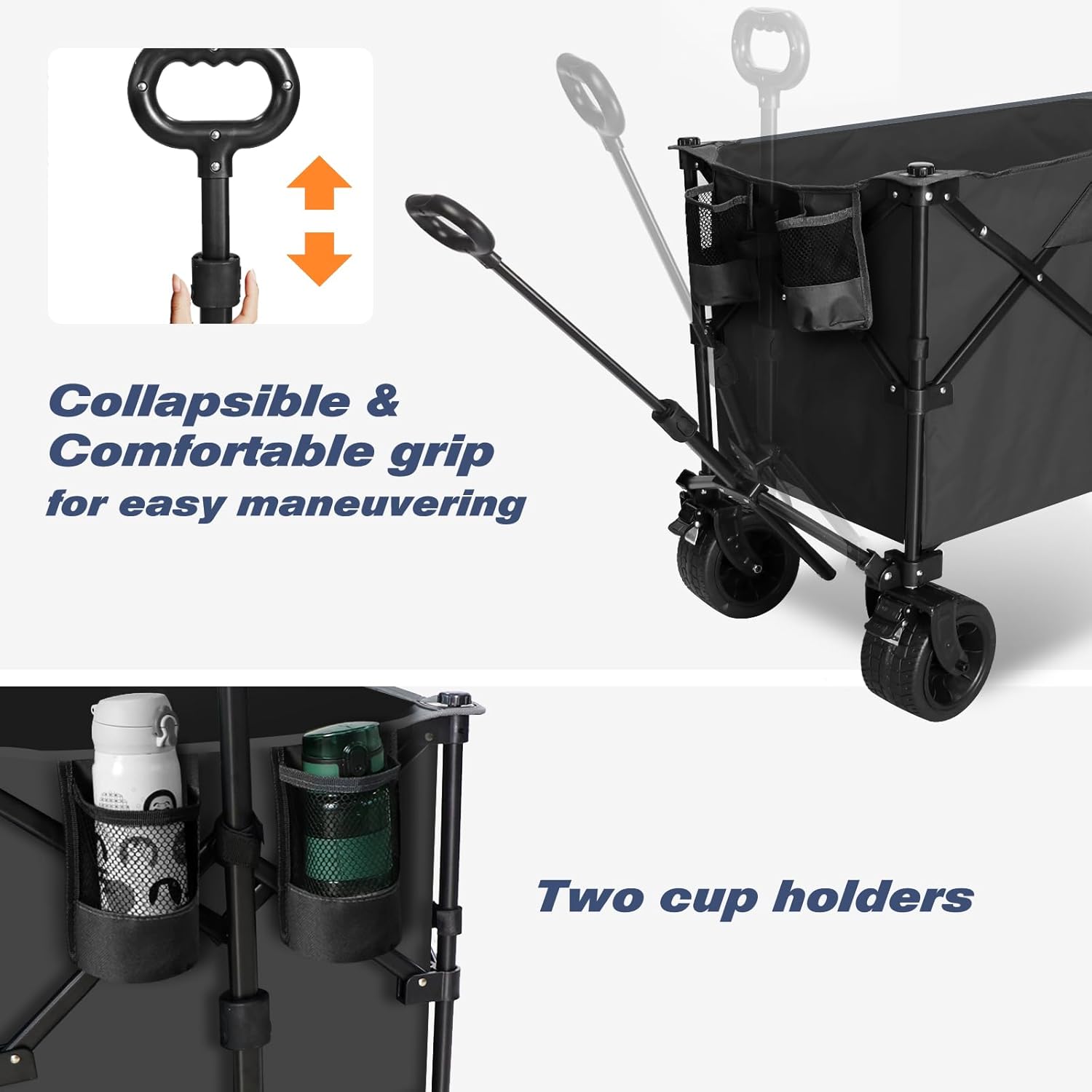 - Special Feature : Adjustable Handle, Built-In Cup Holder, Collapsible, Heavy Duty, Maneuverable