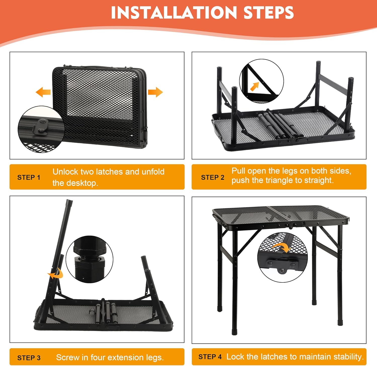 Camping Table with Mesh Desktop, Lightweight & Portable Folding Grill Table, Height Adjustable Metal Outdoor Table for Camp, Cooking, BBQ, RV, Picnic-4 FT Black