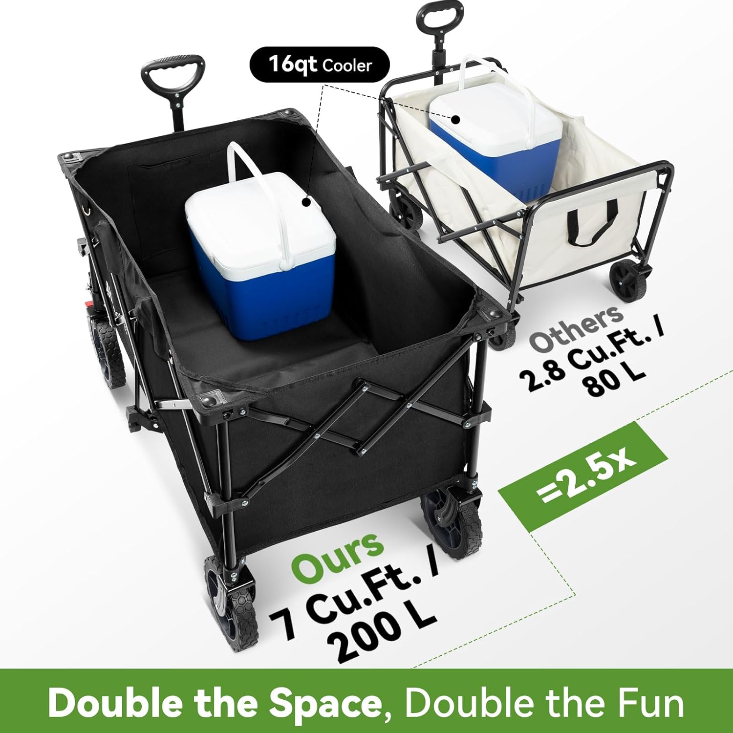- ππππ ππππππππ - ππππππ ππ§π ππππππ π’π§ πππ©πππ’ππ²: No more backache from carrying too much stuff with our durable utility wagon! Comparing with other wagon carts of standard size, our collapsible cart possesses a much DEEPER and ENLARGED storage space of 36.2" x 21.7" x 15" with plenty of room to hold all your stuff.