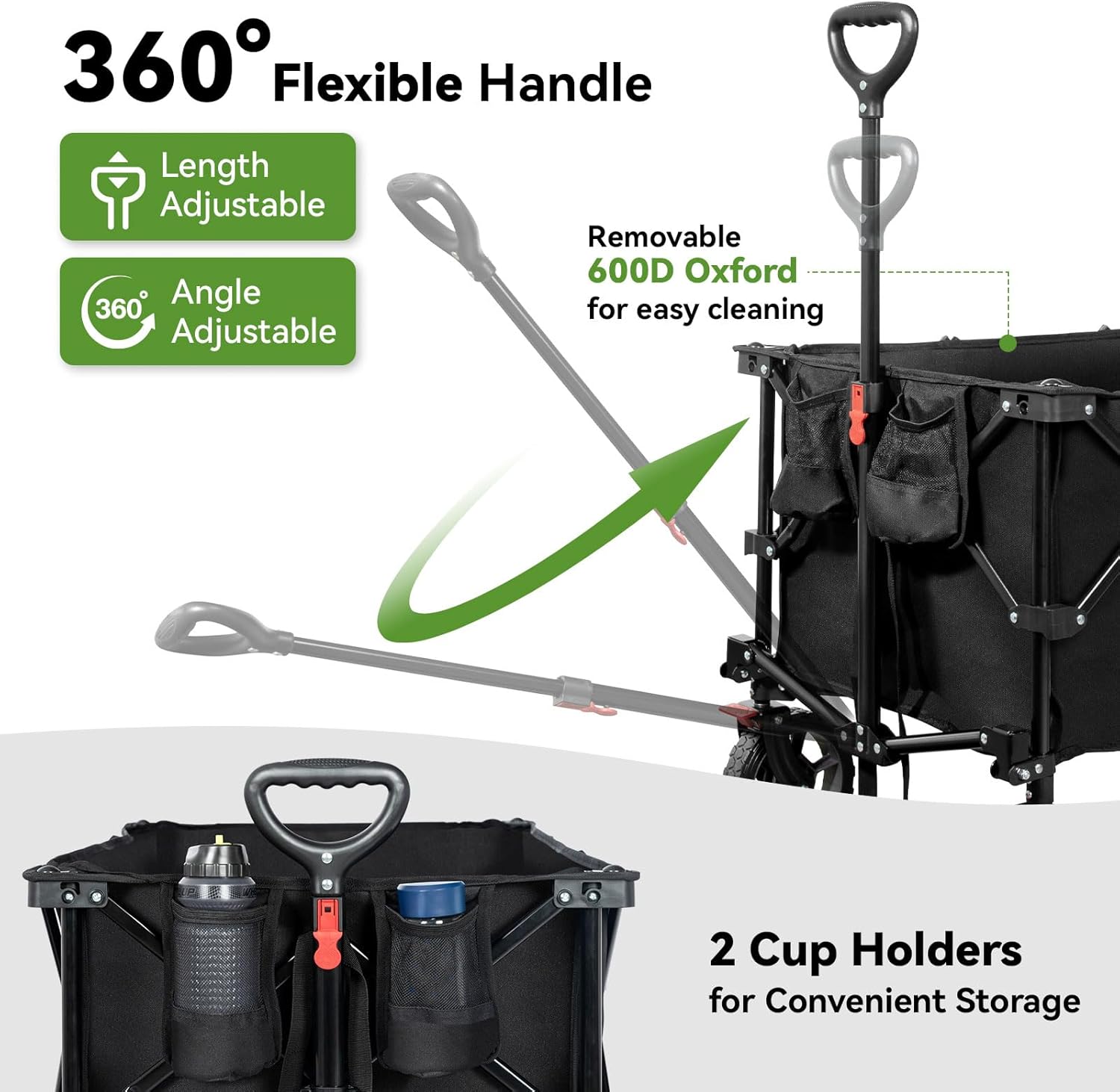 Hikenture 330lbs Collapsible Wagon Cart, Ultra-Large Wagons Carts Foldable Heavy Duty, Utility All Terrain Folding Wagon with Wheels for Groceries, Garden, Sports, Beach, Shopping, Black