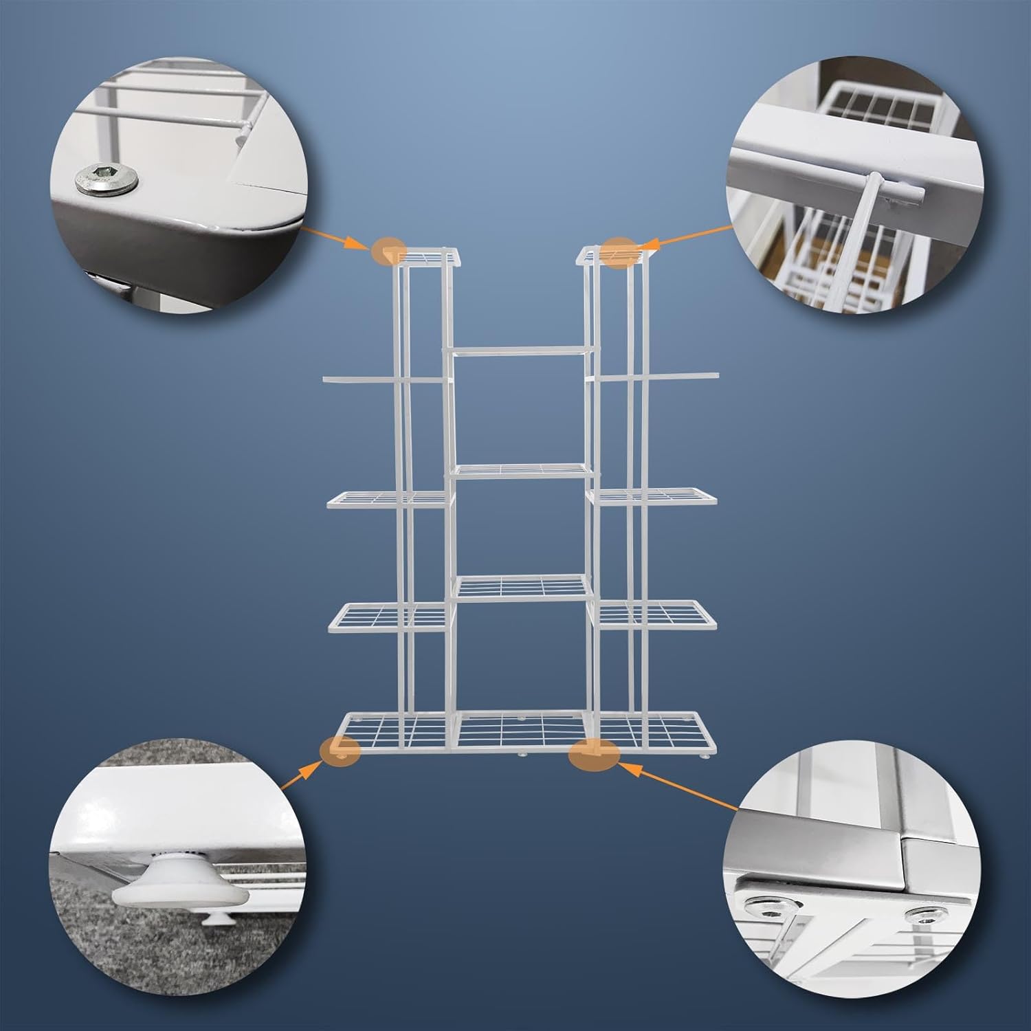 - 【STYLISH & DECORATIVE】: The stand features a contemporary design with clean lines and a minimalist aesthetic. The metal frame is finished with a smooth and elegant coating, adding a touch of sophistication to any plant display. Whether used indoors to create a vibrant and eye-catching plant display in living room or hallway, or placed outdoors to enhance a garden or patio, the metal plant stand is a versatile and functional piece that adds an element of style to any space.
