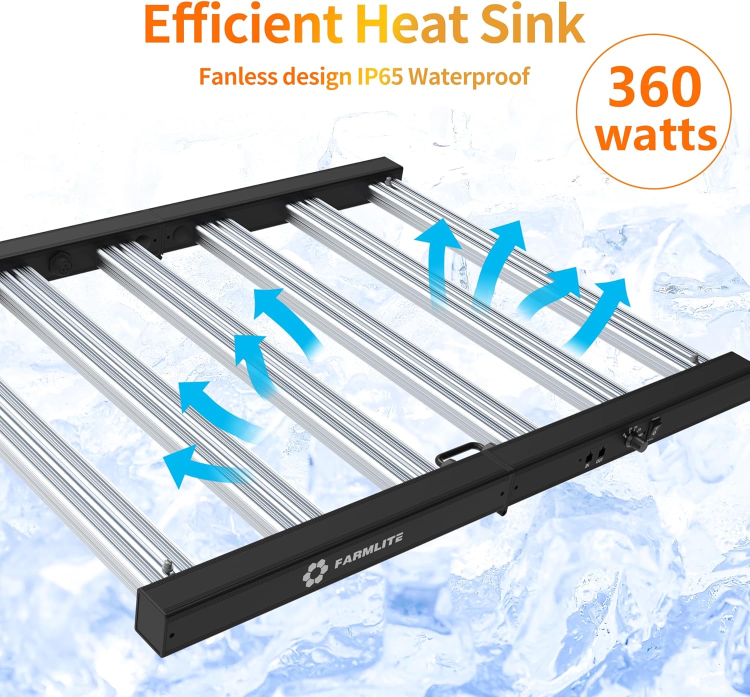 - 【Efficient Heat Dissipation and No Noise】Our grow lights are made of 6 lightweight aluminum bars, which has efficient heat dissipation and cooling functions.it's powerful heat dissipation ability that no need to buy more cooling devices.This led plant light has no fan, there will be no noise.it is very light weight and IP67 waterproof,so it's easy to carry and install.