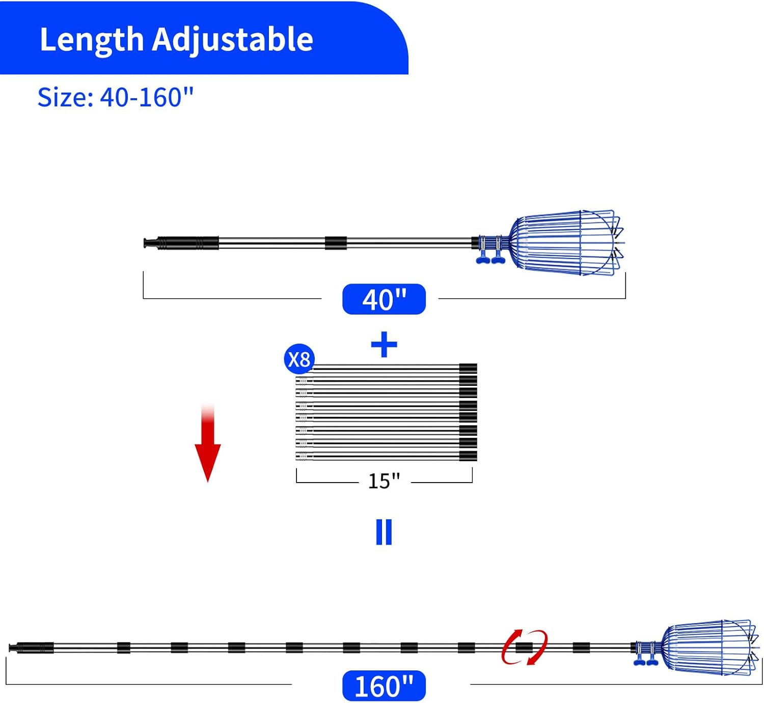 Fruit Picker Pole with Basket Segmented Fruit Picker Pole Tool for Apple Avocado Cherry Lemon Mango Orange Peach Picking(40-160")