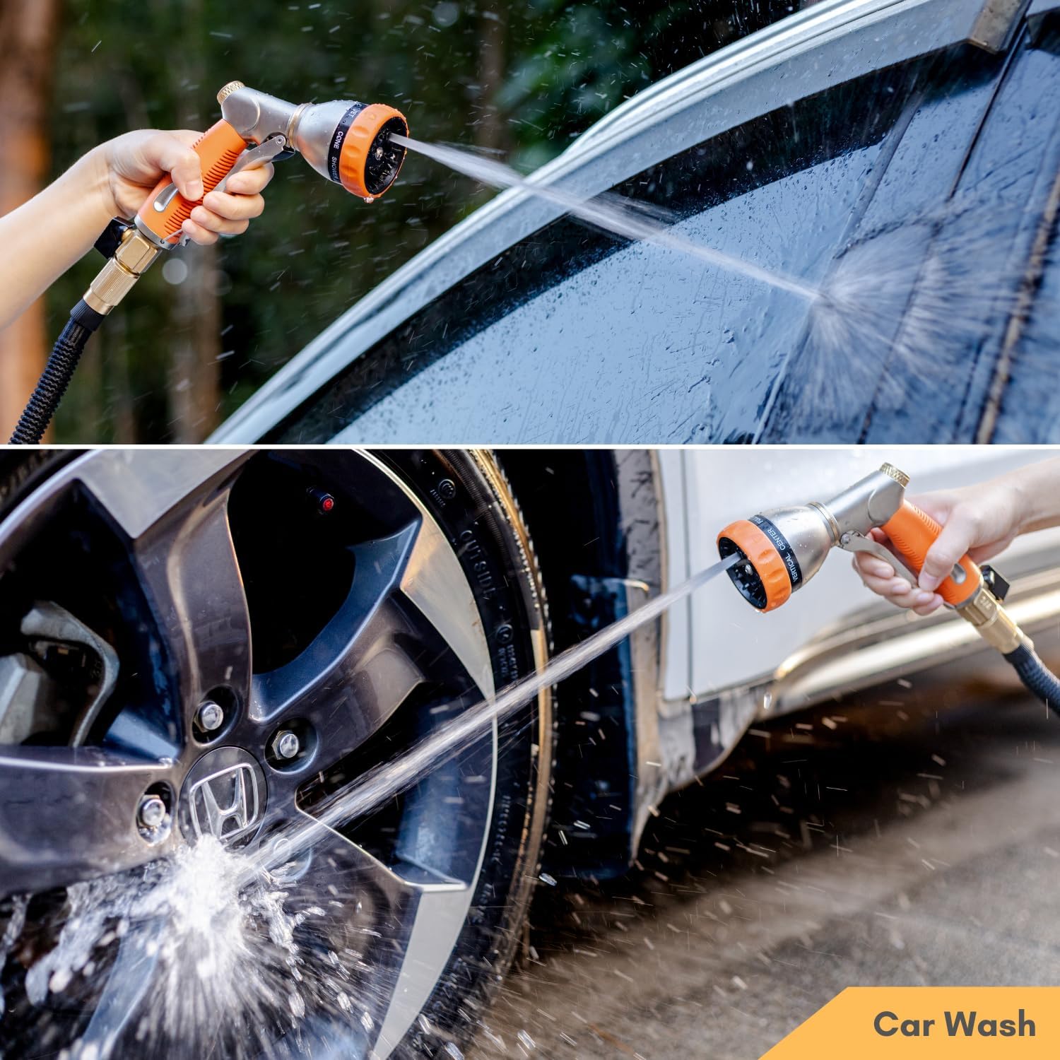 - 8 Patterns Spray Nozzle: HOSUN versatile garden hose nozzle support to meet different watering needs. Rotate the sprayer head to choose from a soft shower to high-speed jet. No matter you're watering the garden, cleaning vehicles, or giving your dog a bath, you will find a pattern that best fits your need.