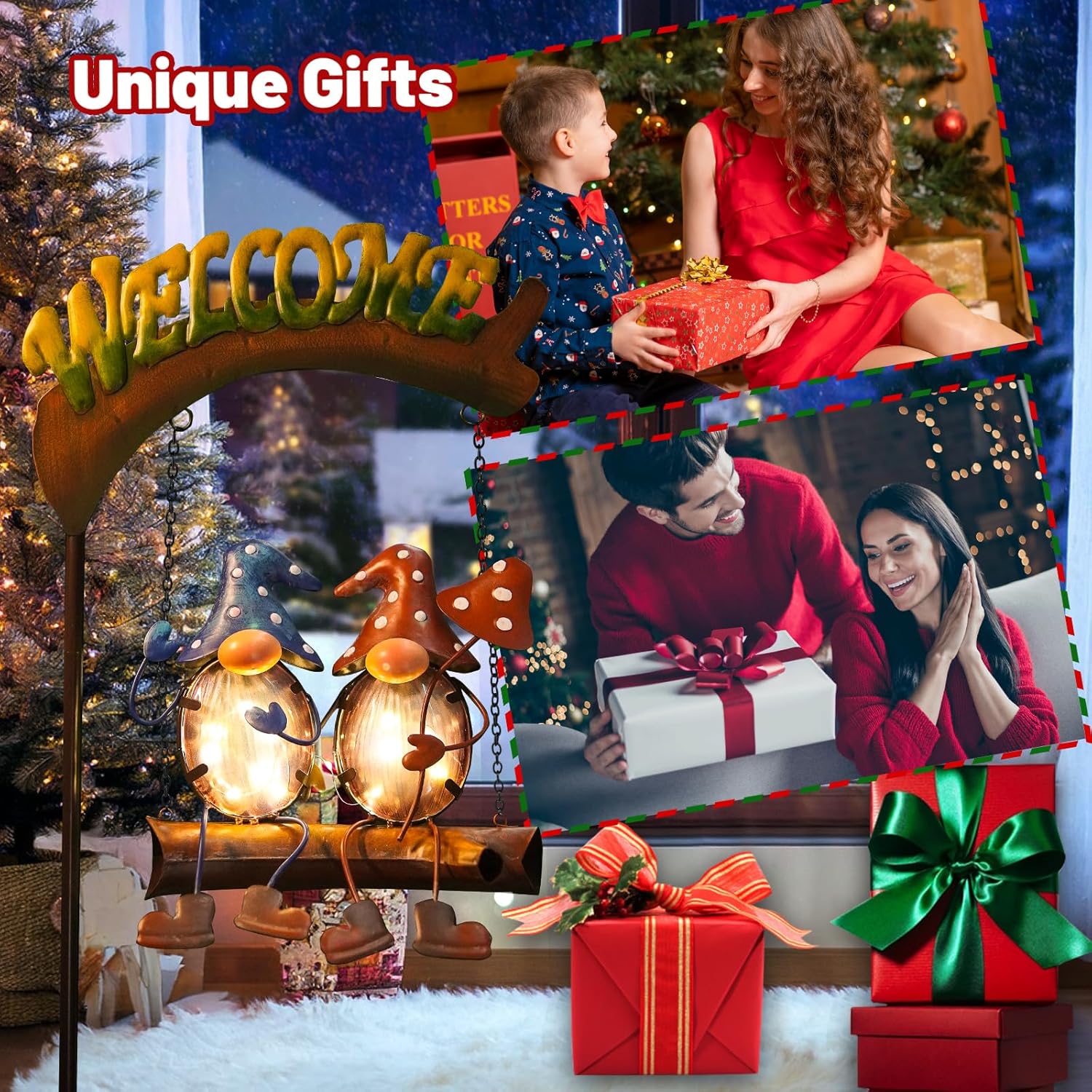 - 【Gnomes Patio Decor】The unique and original fairy gnome swing design, with the gnome partner holding the mushroom playing on the swing with the word "Welcome", makes your garden full of vitality and fun