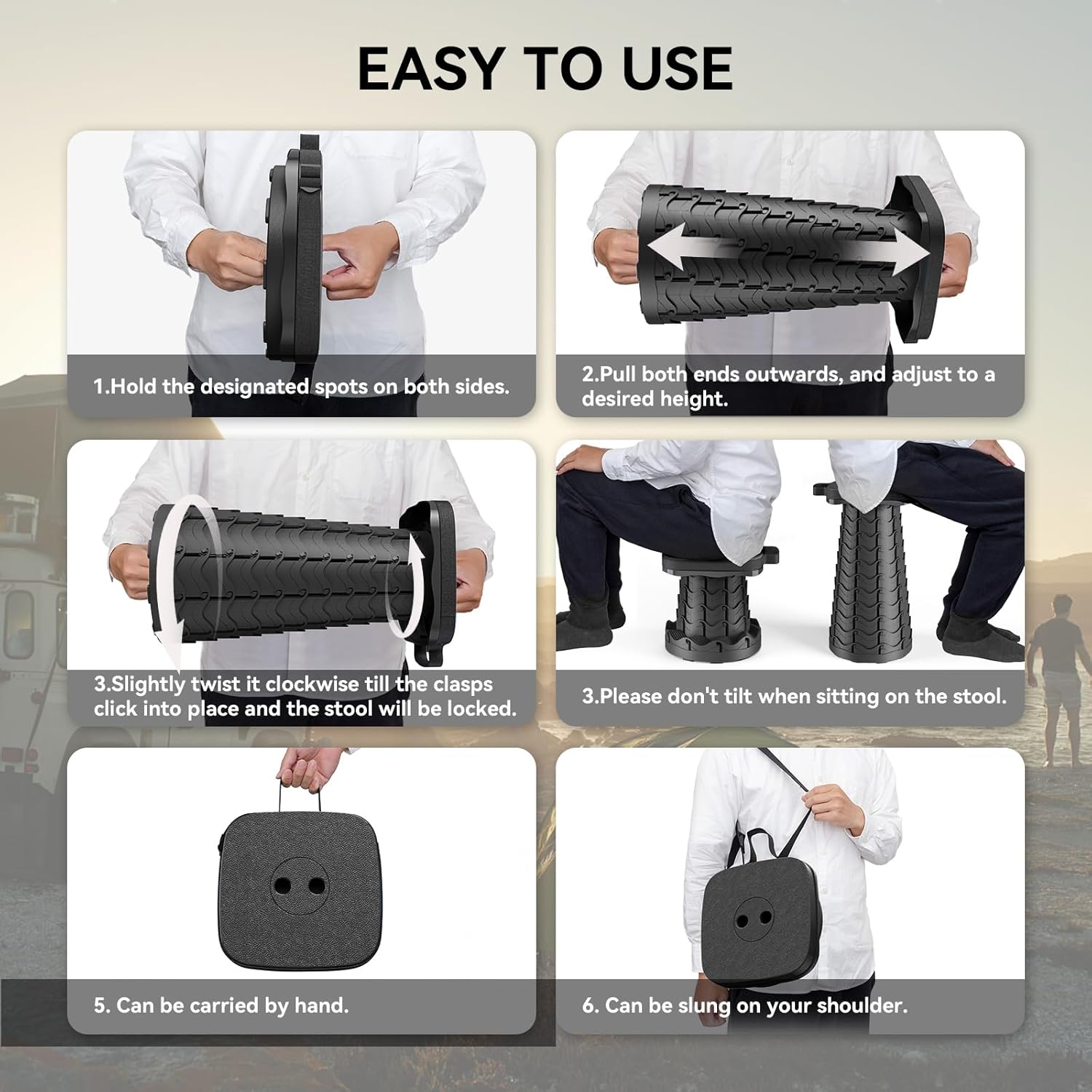2025 Upgraded Portable Folding Stool, Collapsible Stool, Telescoping Camping Stool with Max Load Capacity 485lbs, Square Retractable Seat for Camping Gardening Fishing Hiking BBQ[Black]
