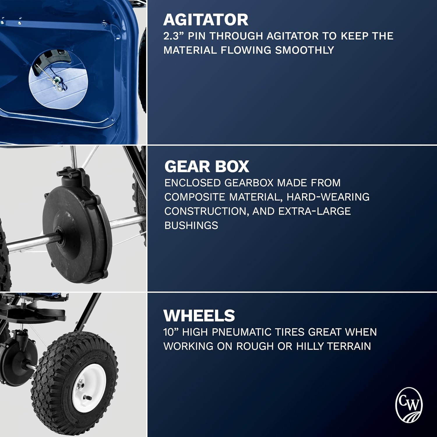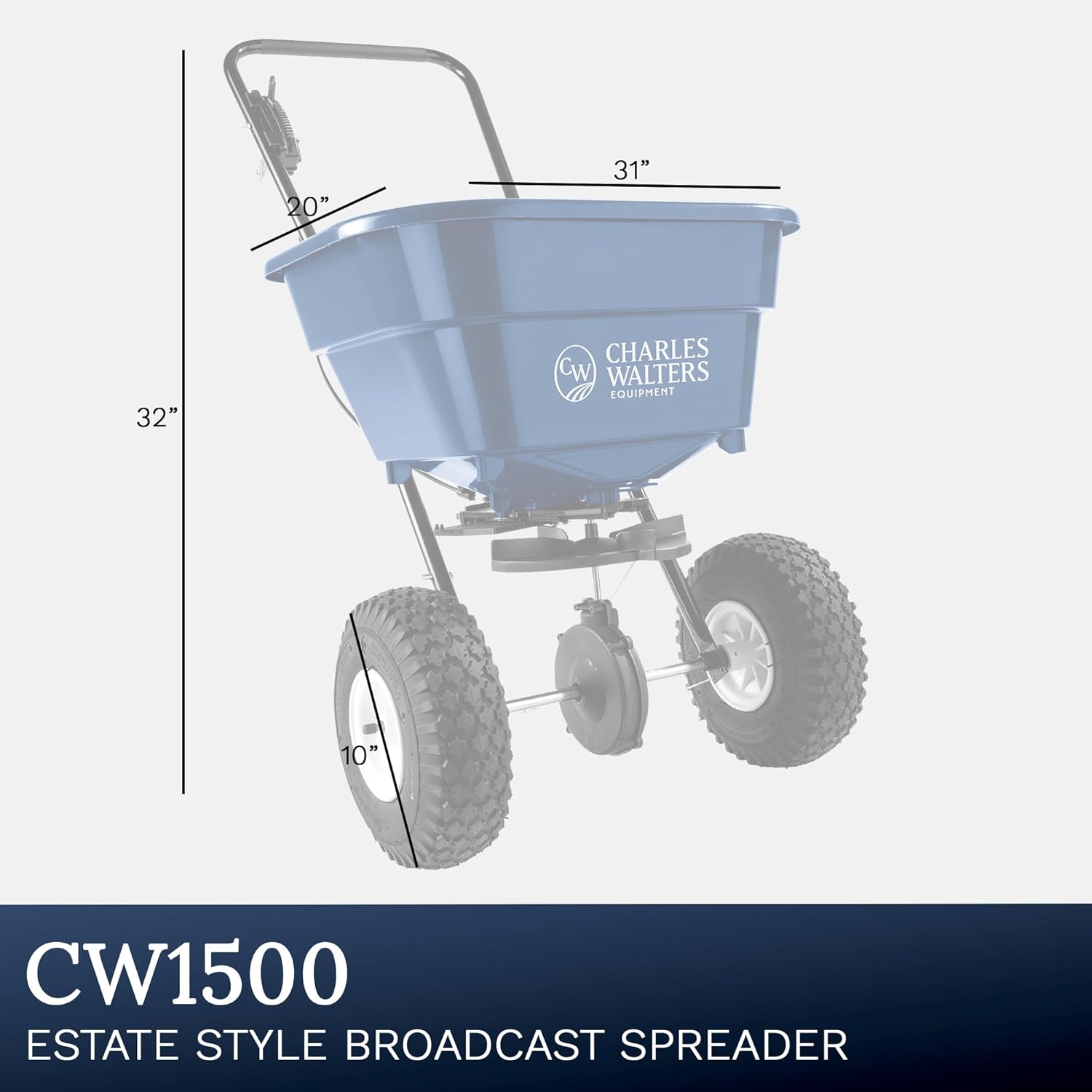 Charles Walters Equipment CW1500 Estate Style Broadcast Spreader for Spreading Fertilizer and More on Lawns, Sidewalks, and Driveways, 65lb Capacity, 31" x 32"