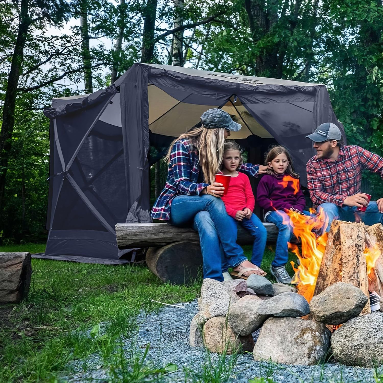 - Protective Sides: Built-in wind panels that roll up, down, and zip on the sides; Mesh windows in wind panels can be opened or closed; No-see-um mesh screen and extra-wide skirt to keep bugs out; Ideal for camping, picnics, and sporting events