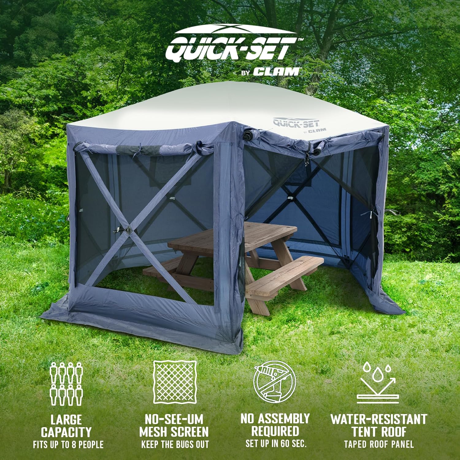CLAM Pop Up Screen Tent, Outdoor Camping Gazebo Canopy, Pavilion, 12.5', Blue