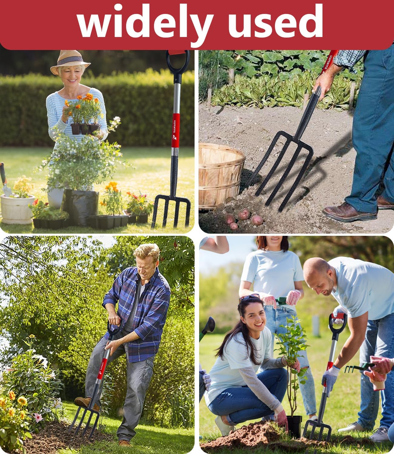 - Ergonomic Brilliance: D-Grip for Unmatched Comfort and Control:Comfort and control are non-negotiable when it comes to gardening tools. The D-handle grip on our 4-Tine Hay Fork offers a firm and comfortable hold, allowing for precise two-hand control. The ergonomic design ensures comfortable use at all angles, making it a versatile tool for various gardening tasks. Bid farewell to discomfort and welcome an elevated gardening experience with a grip designed for your comfort.