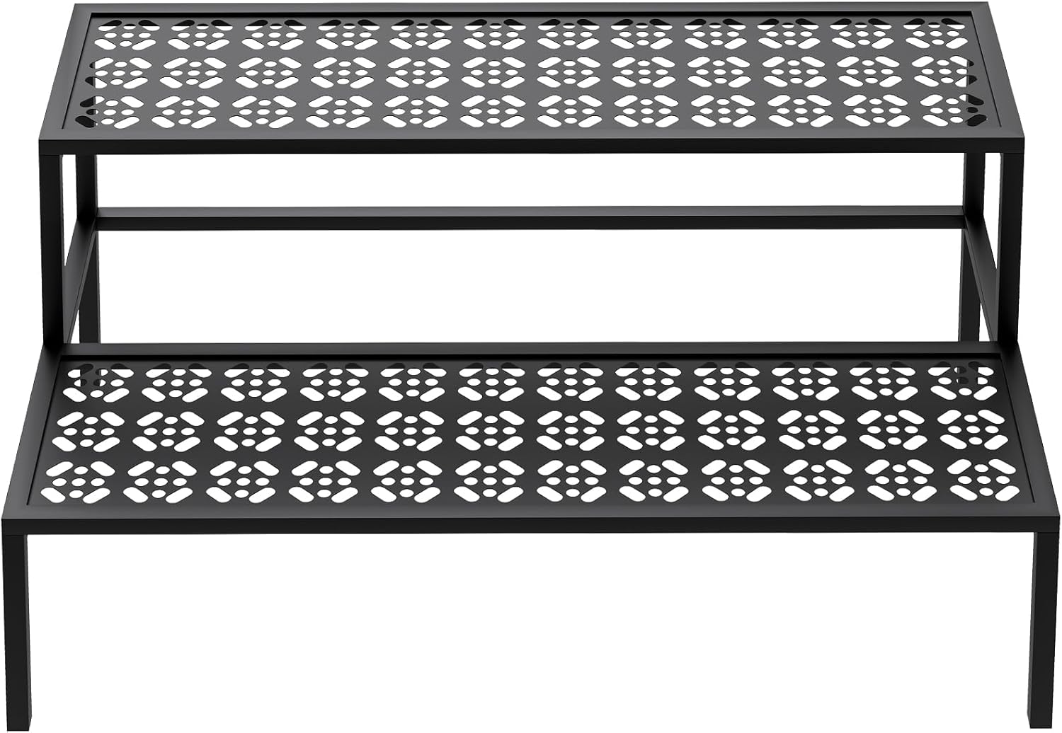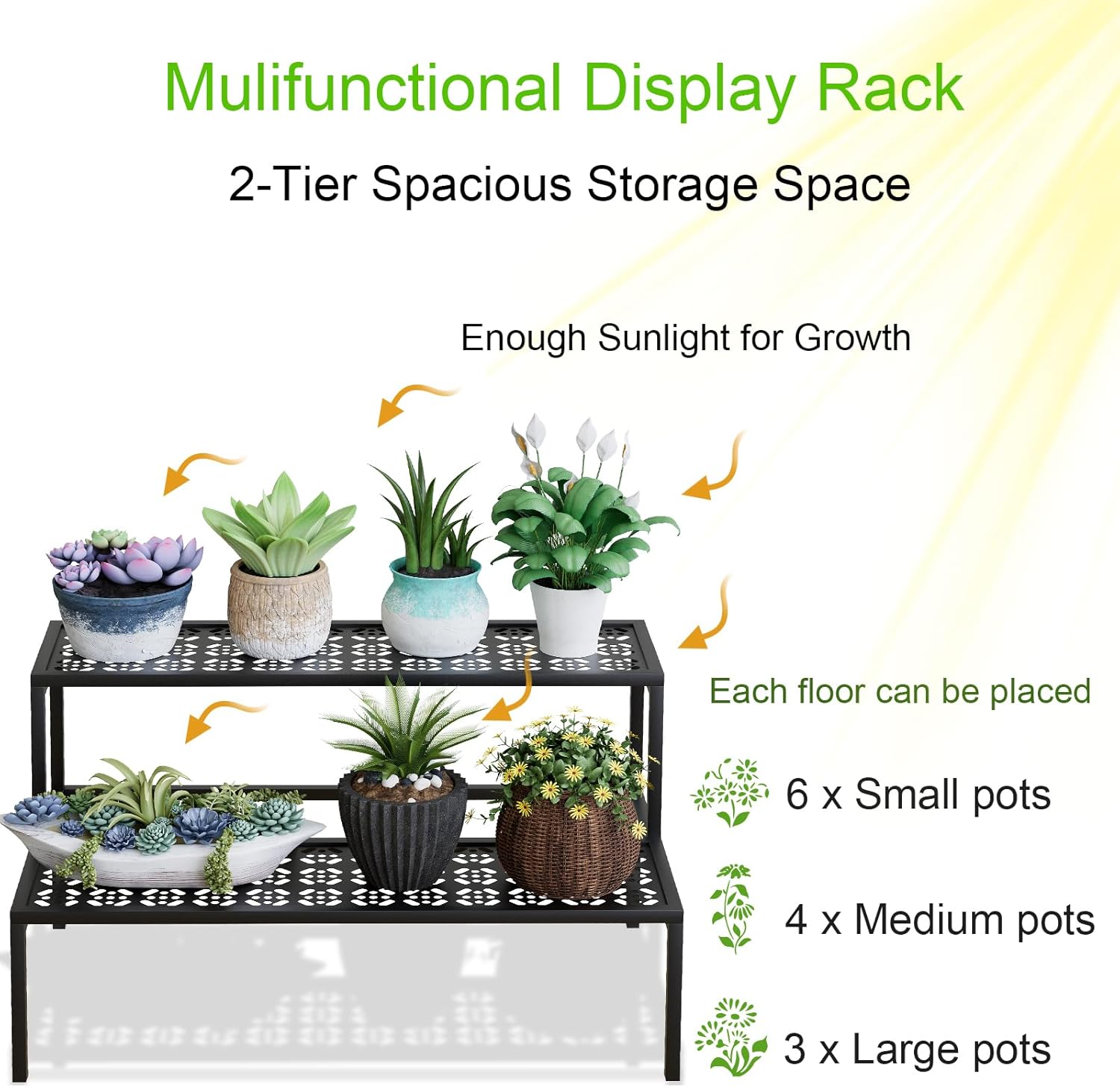 aboxoo Metal Plant Stand 2 Tier Potted Multiple Flower Pot Holder Plant Shelf Indoor Plants Multiple,Outdoor Heavy Duty Planter Display Shelving Unit for Patio Garden Corner Balcony(Black)