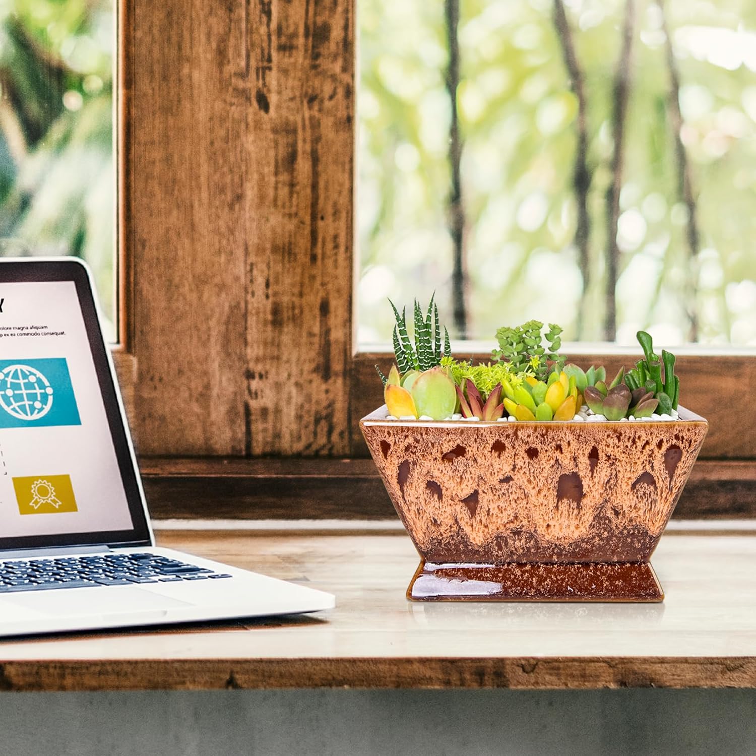 - 【Perfect Size】The package includes a planter pot with drainage in perfect size: 7.1'' *4.1'' * 3.7'' (L*W*H). For any quality problems, please feel free to let us know. Artketty will never disappoint any customer.(PLANTS NOT INCLUDED)
