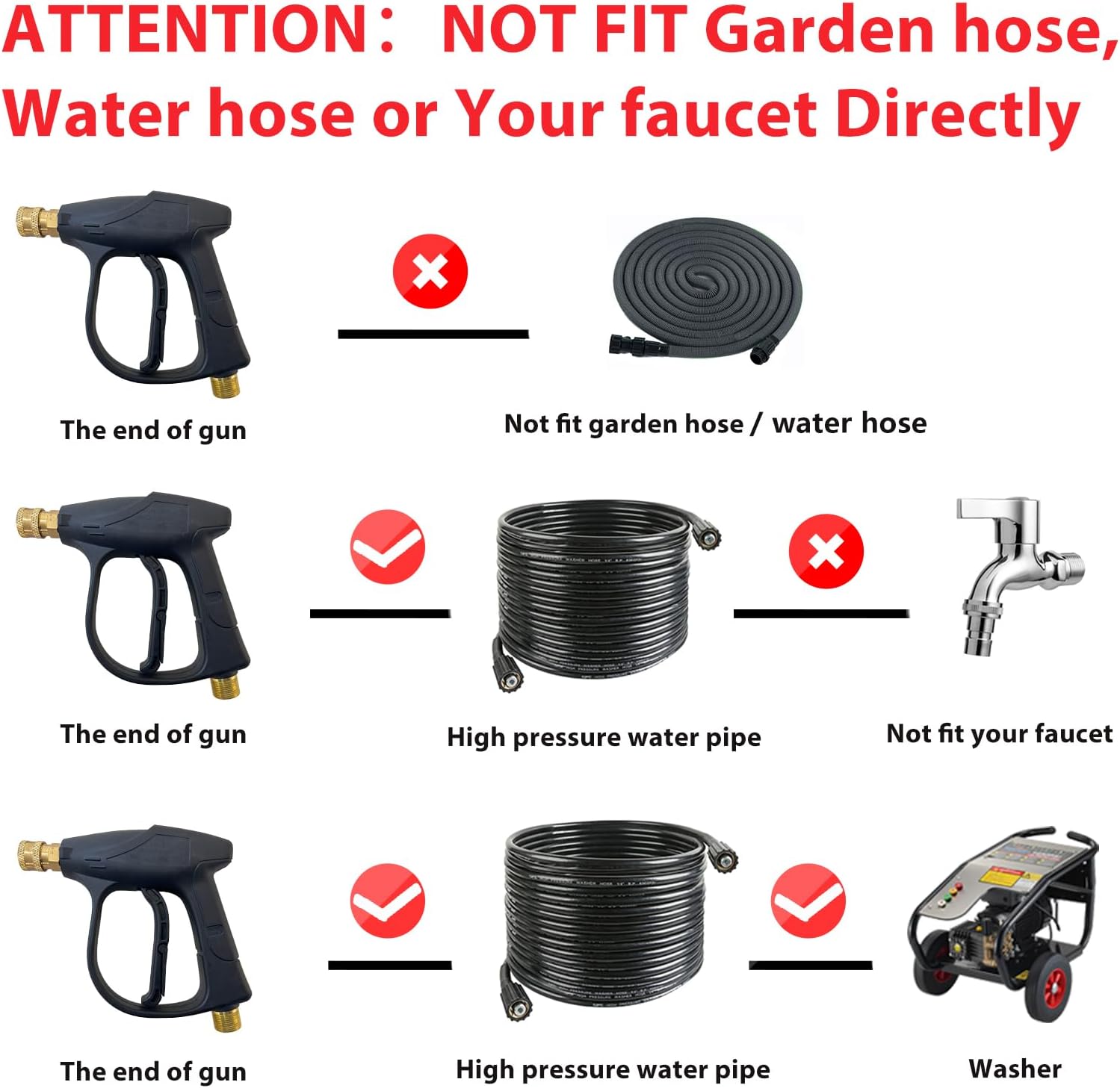 - âăAttentionăNot Fit GardenHose, WaterHose or YourFaucet Directly, it must be connected to the hose of the high pressure washer before it can be used normally.