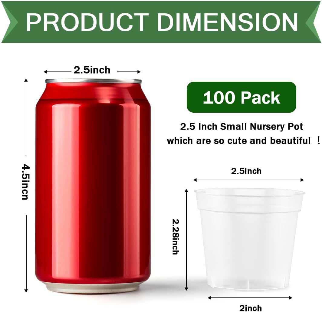 2.5" Clear Seeding Pots 100-Pack Round for Seeds Starter Pots, Seeds Germination Transparent Nursery Pot with Drainage Holes (2.5Inch,100Pcs,Clear)