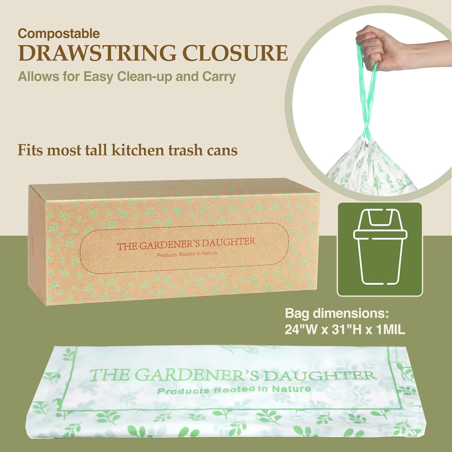 13 Gallon Compostable Trash Bags β Extra Strong, Drawstring Kitchen Bags (30 Count, White) | Leak-Proof, BPI & TUV Certified, Home Compostable β Evergreen by The Gardener's Daughter