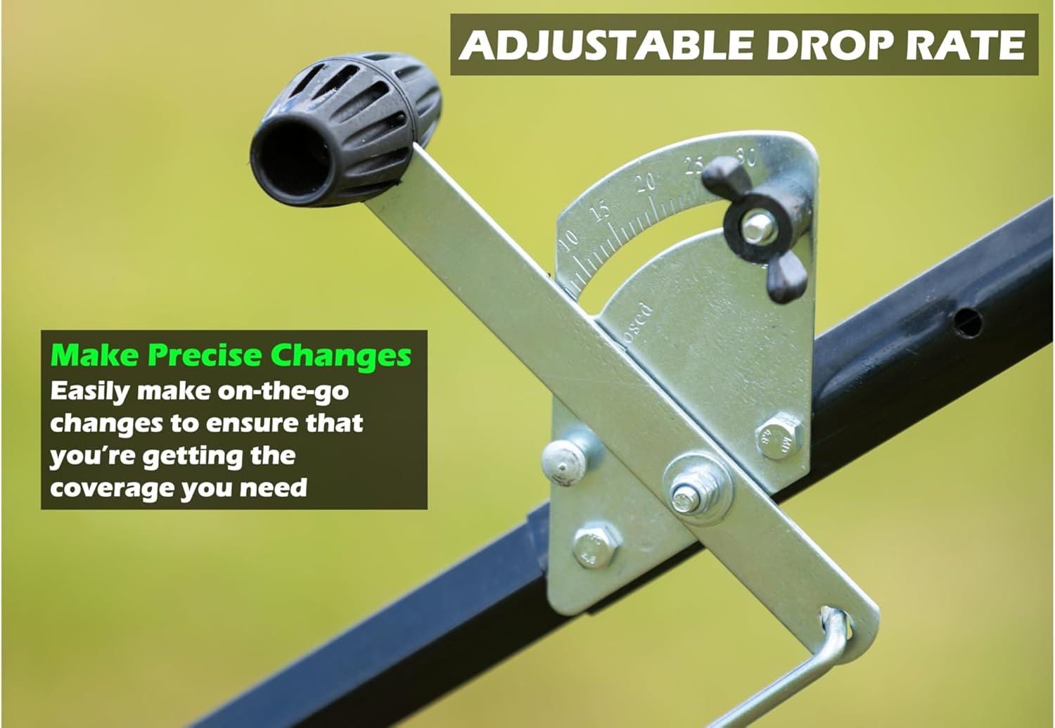 - ADJUSTABLE DROP RATE: Easily adjust the spread radius from 10-12 feet for precise coverage and even application of fertilizer, seed, or salt.